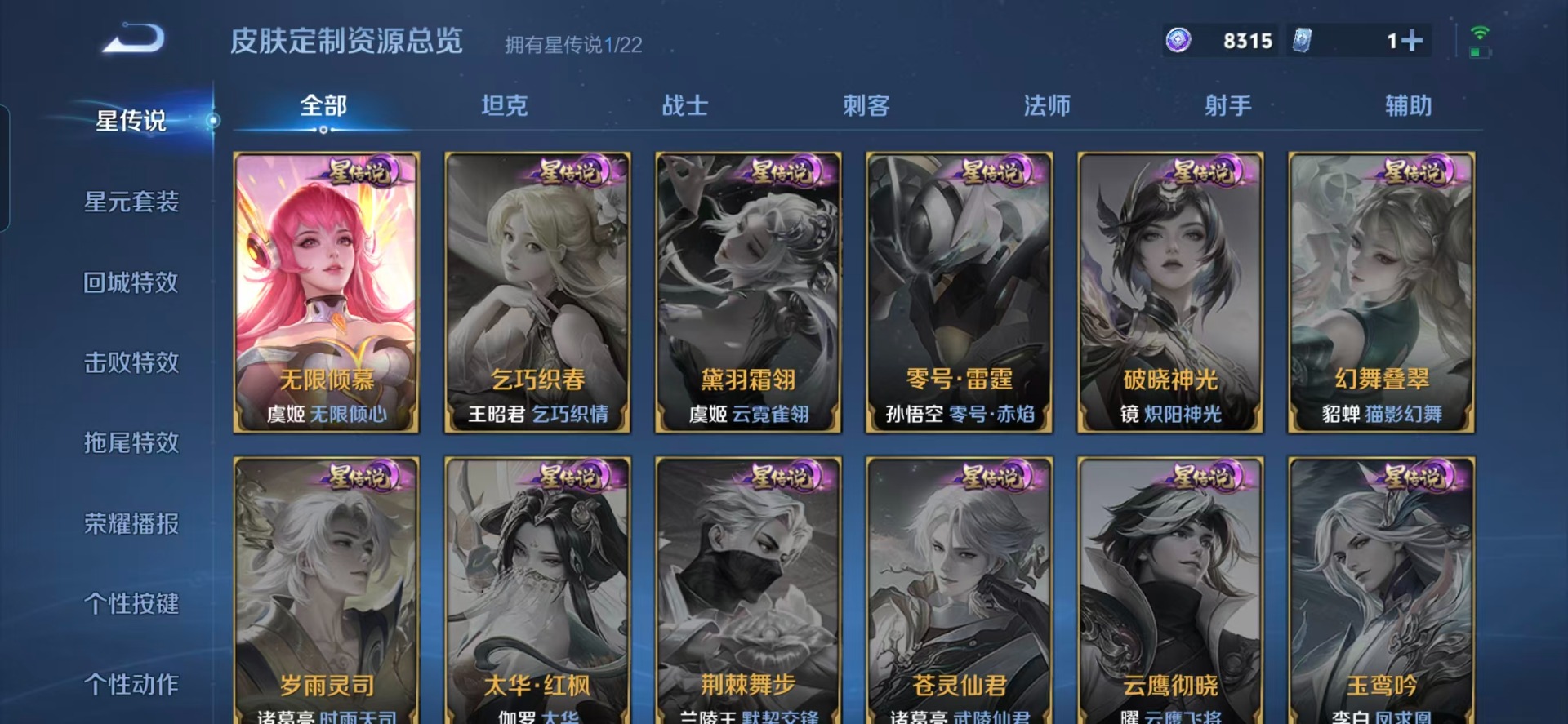 V5 4传说 125英雄 209皮肤 可修改实名 【稀有英雄】大司命