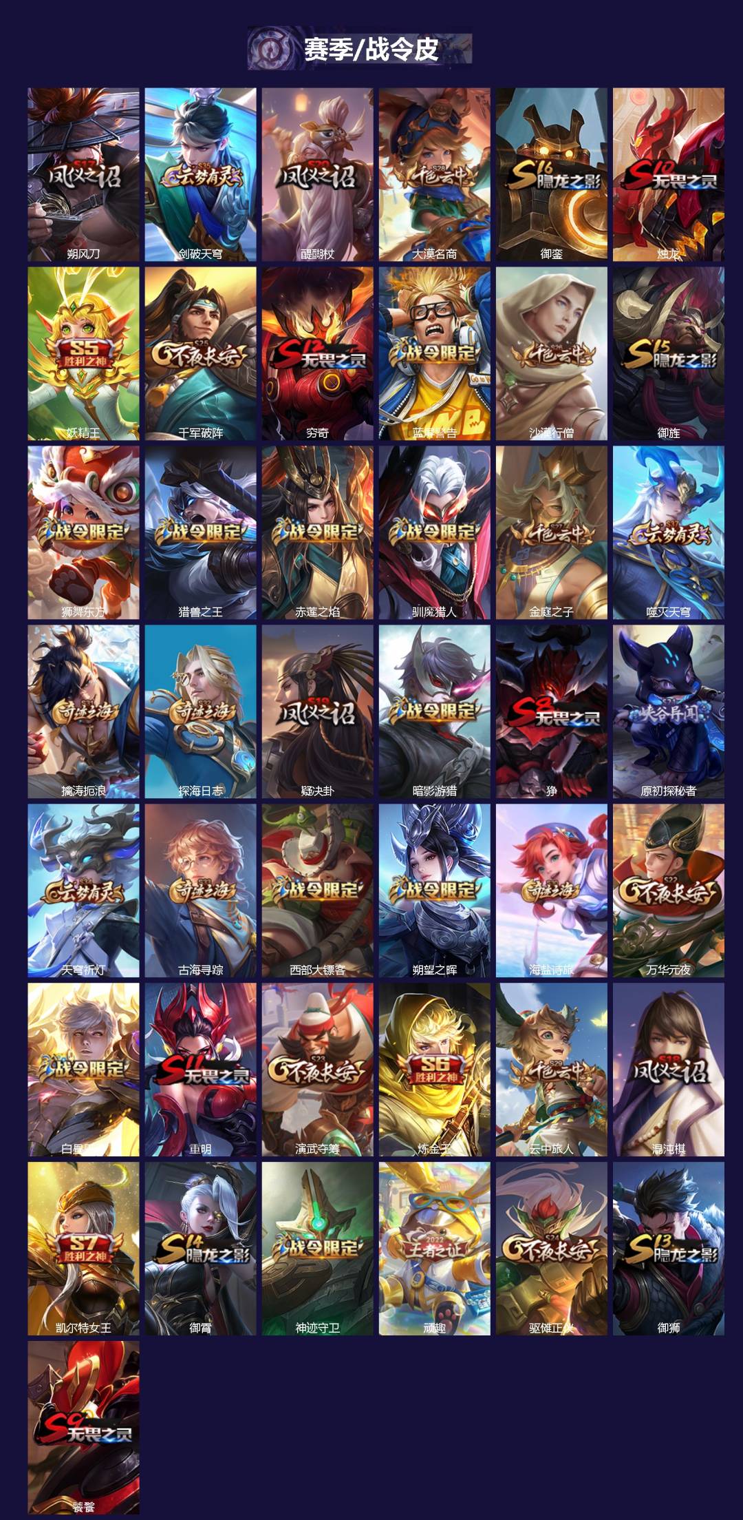 【赛季/战令皮】噬灭天穹(s37),古海寻踪(s33),海盐诗旅(s30),擒涛扼浪(s31),探海日志(s32),顽趣-梦奇,剑破天穹