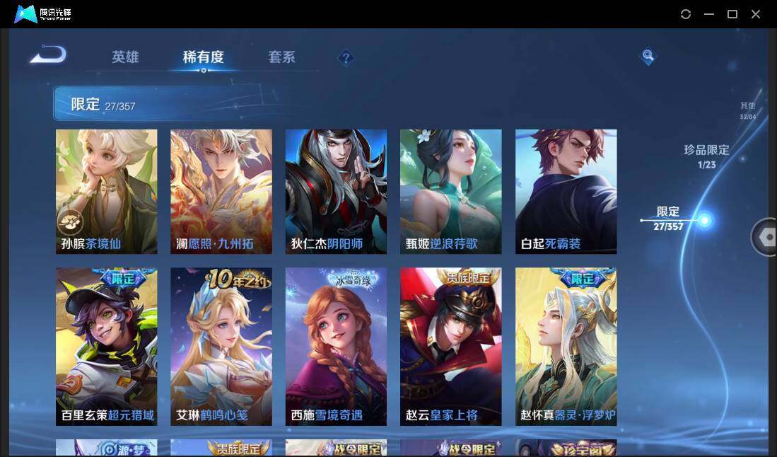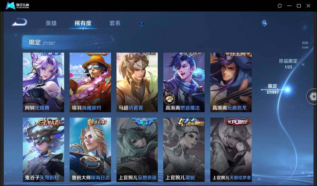 【W4829】嫦娥器灵·落星盏-安卓QQ-有二次-贵5-124英雄-119皮肤-1典藏-1珍品传说-4传说-27限定-2按键-灵宝-3印记-6409贵族积分-营地1691620452-热门皮肤-韩信弑枪猎影,澜愿照·九州拓,云缨幻光神枪,夏洛特浮生妄,达摩黄金狮子座