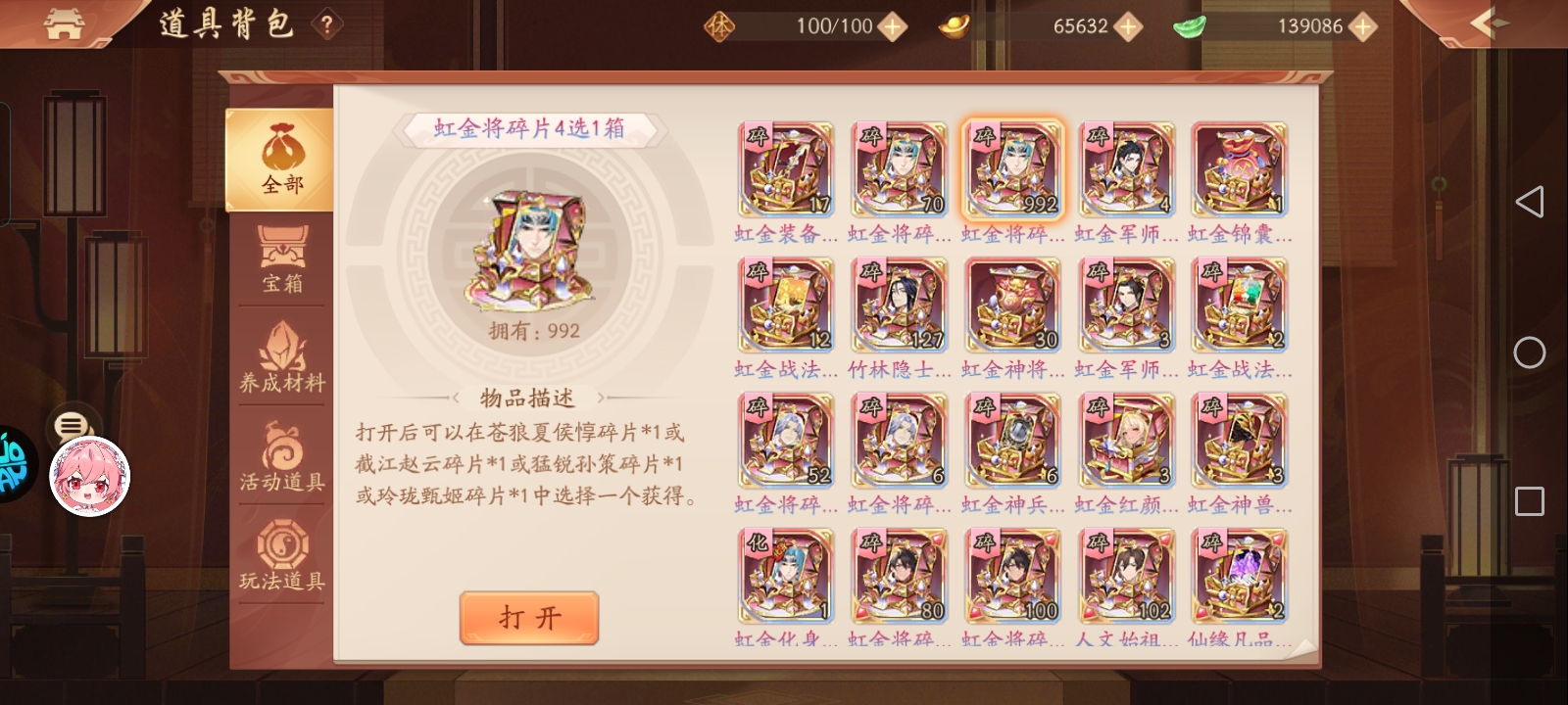 人文始祖13个虹金武将虹金战法化身符