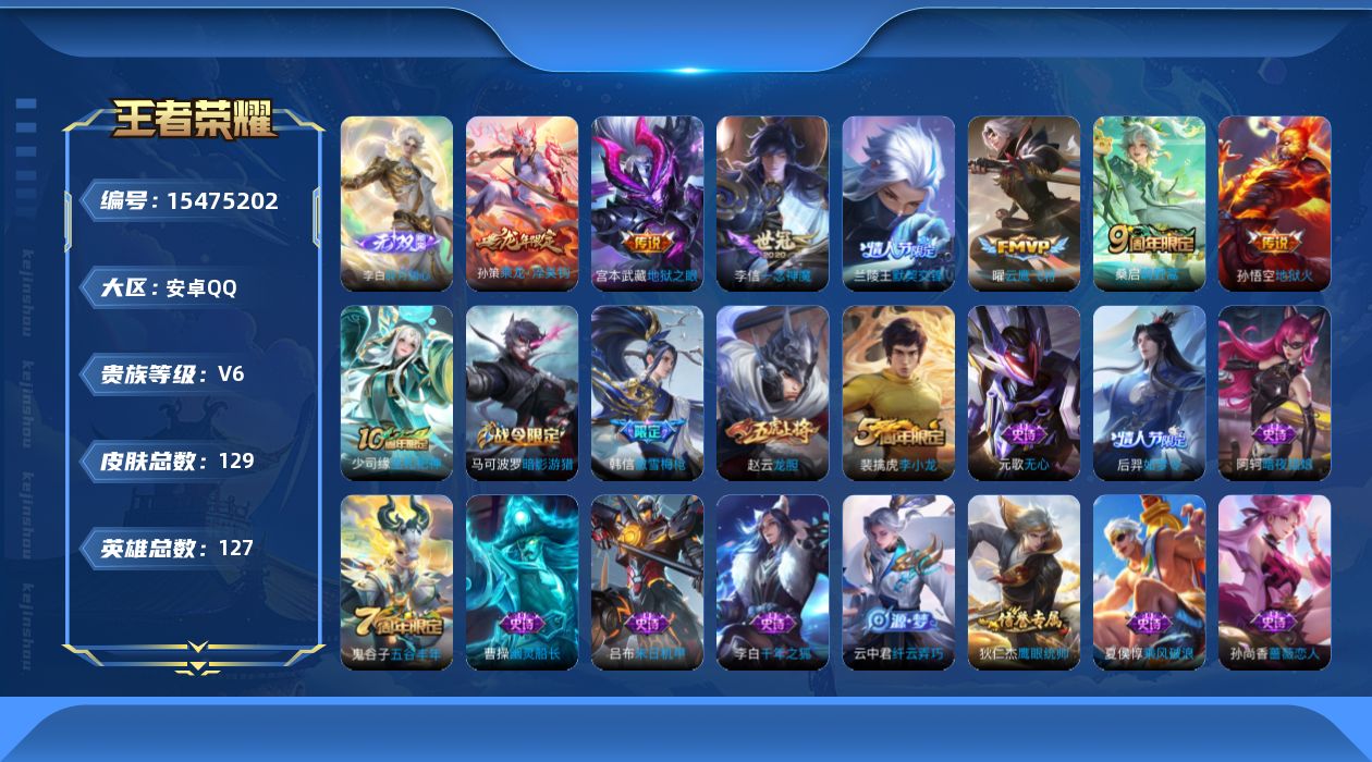 V6 1无双 7传说 127英雄 129皮肤 可修改实名 【英雄全皮】敖隐全皮