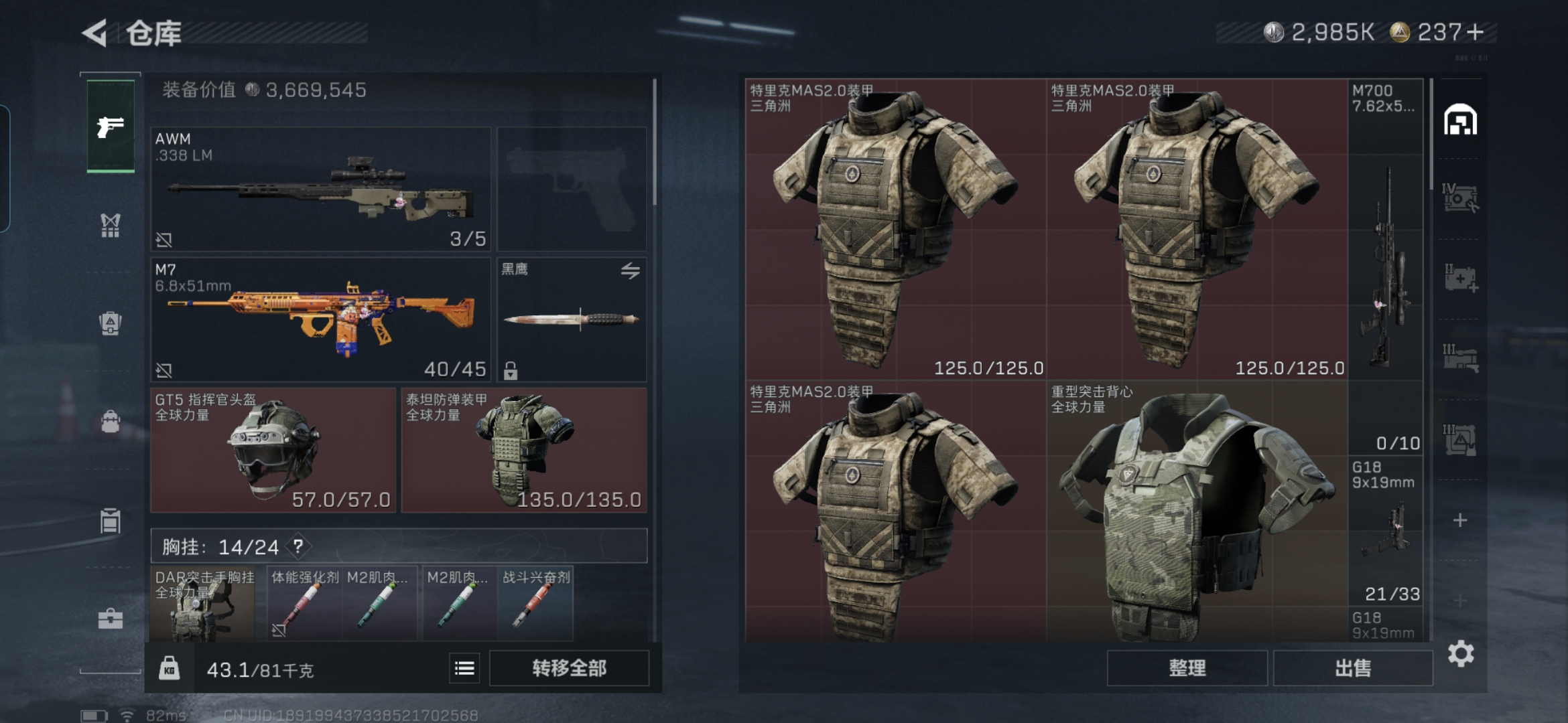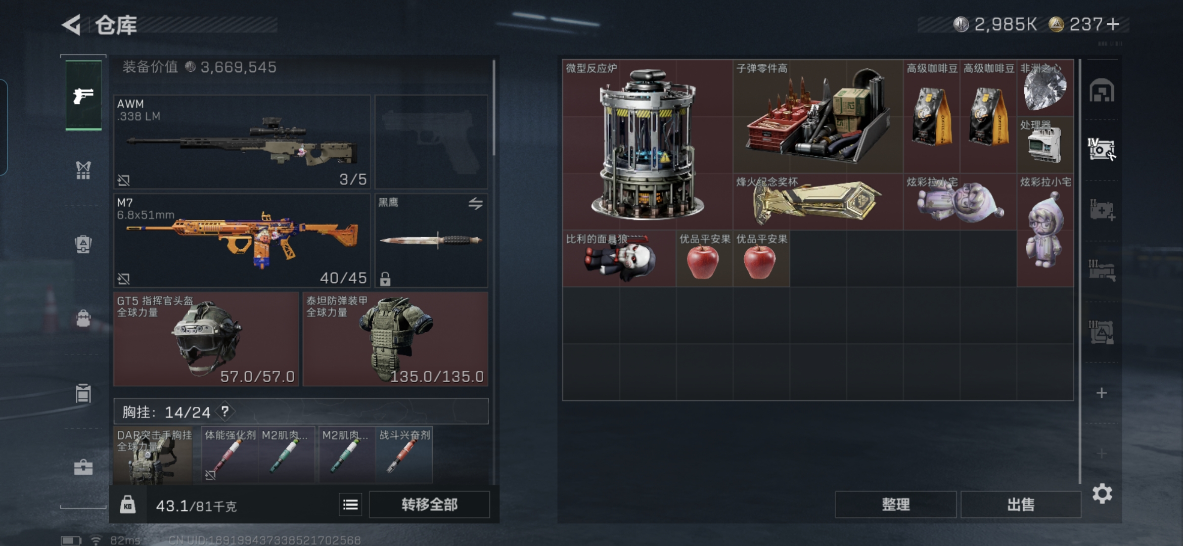 总价值76.2M-哈夫币2985k-烽火地带等级60-