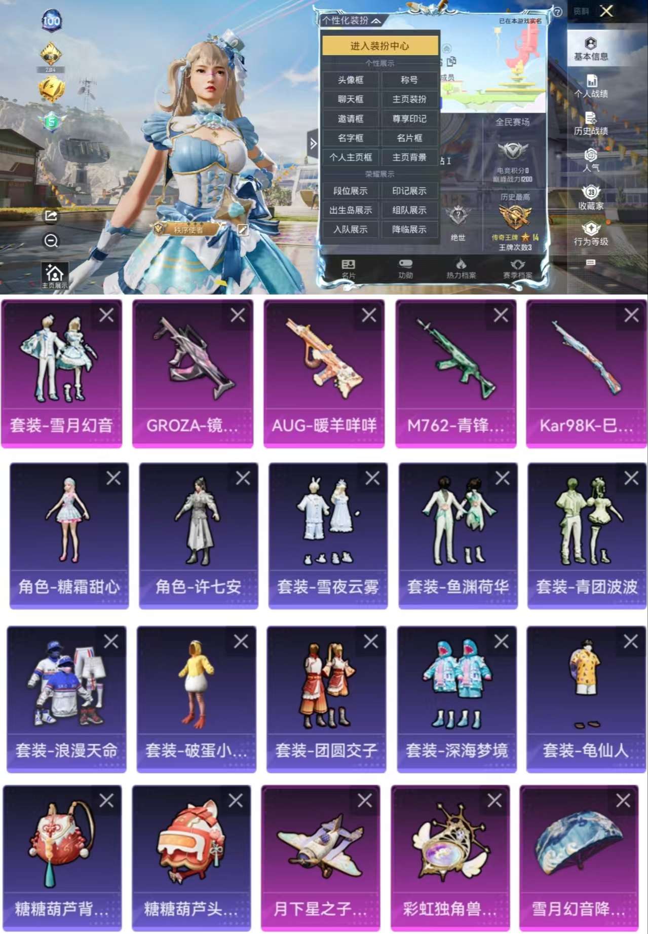 1粉装-4特效枪-31525热力值-3王牌印记-81套装-115枪皮【优质套装】: 雪月幻音【特效枪等级】:M762-青锋波束(五级- M762-青锋波束)AUG-暖羊咩咩(五级- A