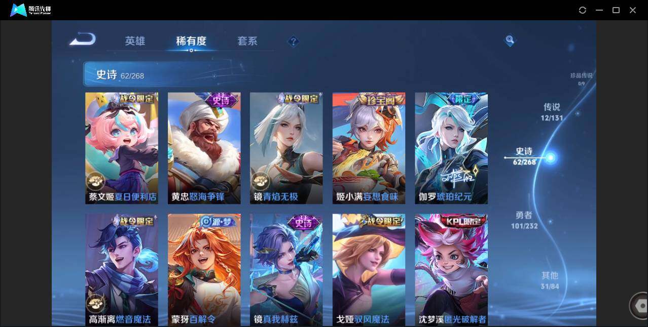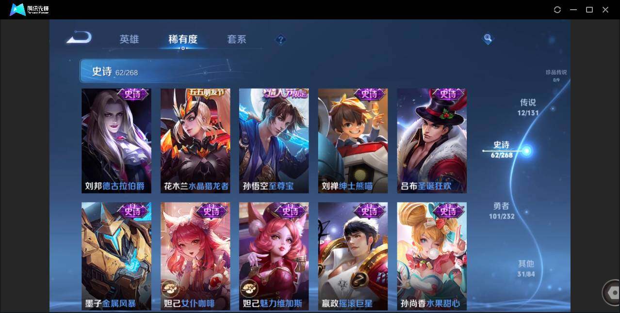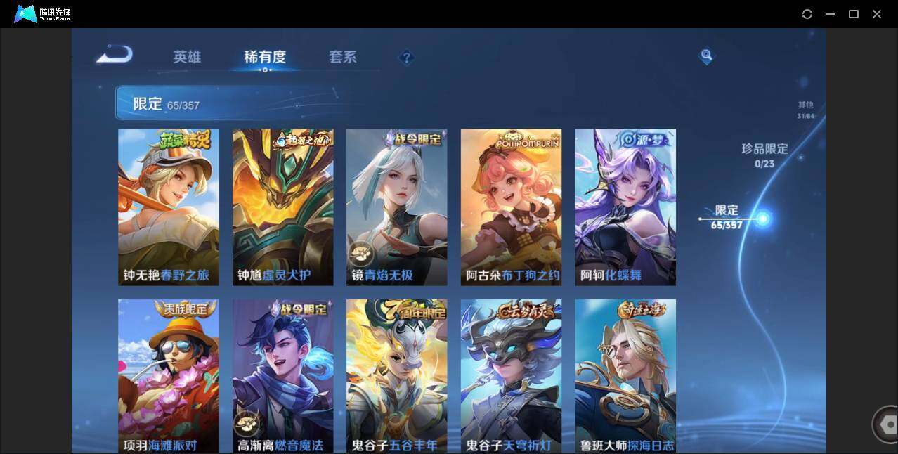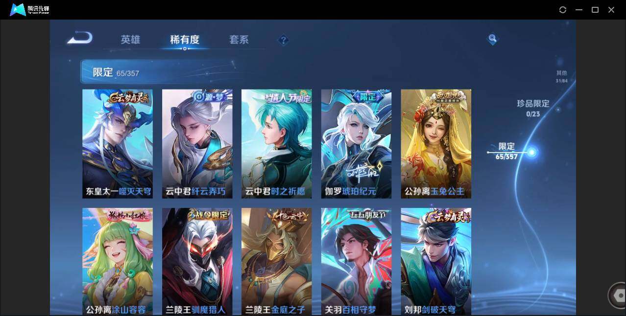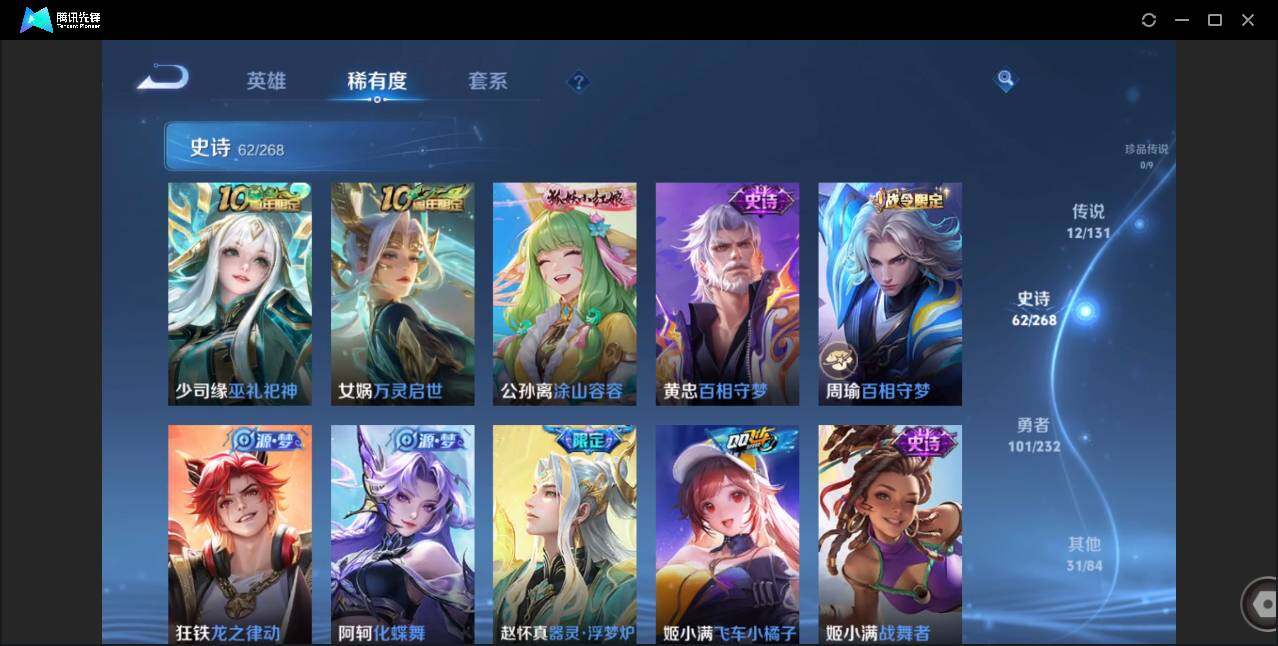 【W4839】安卓Q区-可二次-贵7-125英雄-207皮肤-1典藏-12传说