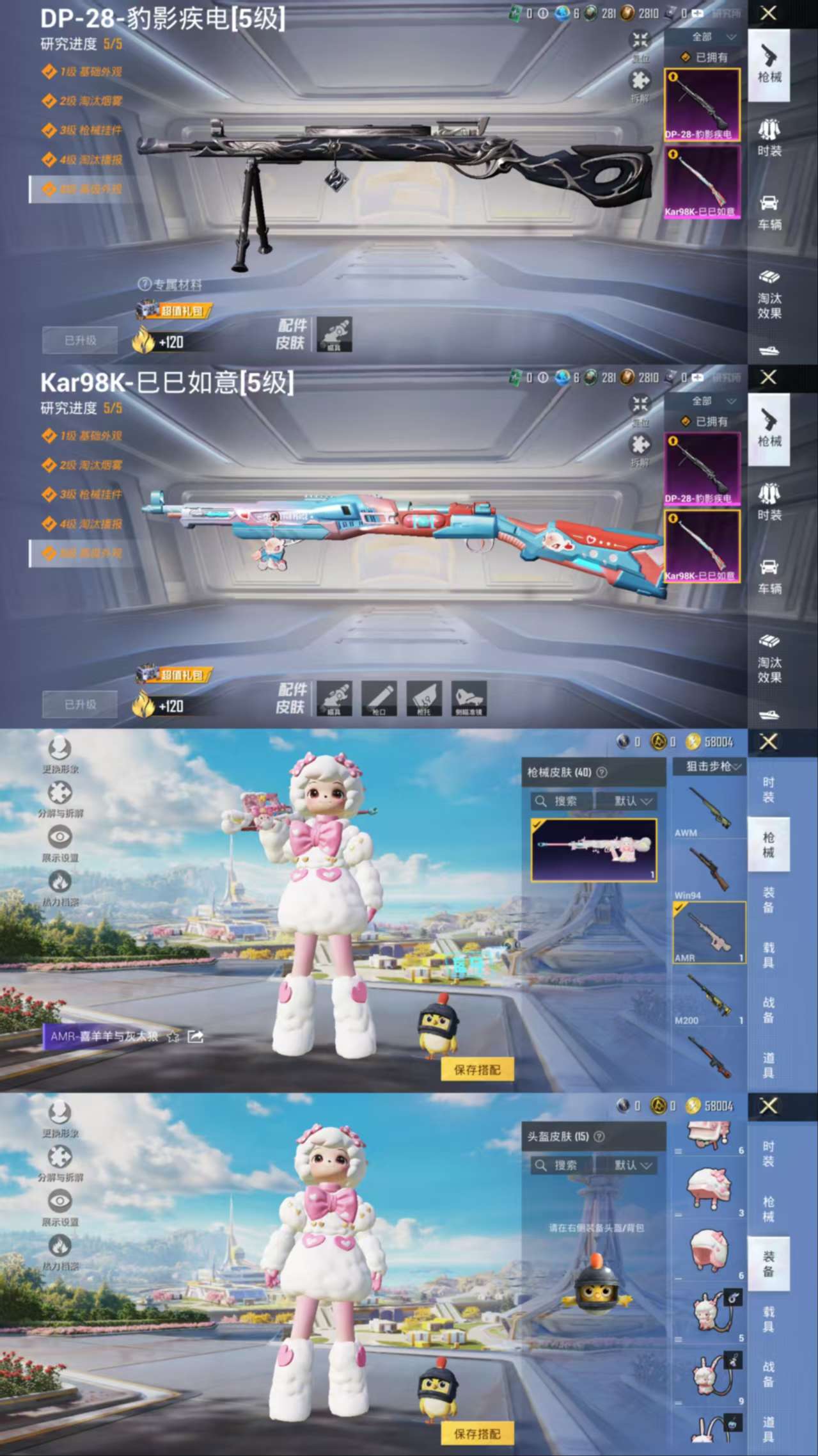 CH103【传奇印记2特效枪 美羊羊喜洋洋懒洋洋 地铁天赋已开 喜羊羊与灰太郎头盔背包全套 AKM-奇异狩猎者】安卓Q区-无二次-2特效枪-9658热力值-1王牌印记-26套装-39枪皮【特效枪等级】:Kar98K-巳巳如意(五级- Kar98K-巳巳如意)【优质武器皮肤】: Kar98K-巳巳如意【稀有武器皮肤】: SCAR-L-海盐豹豹 Kar98K-巳巳如意 蜜獾-乌木金纹 M416-红色方