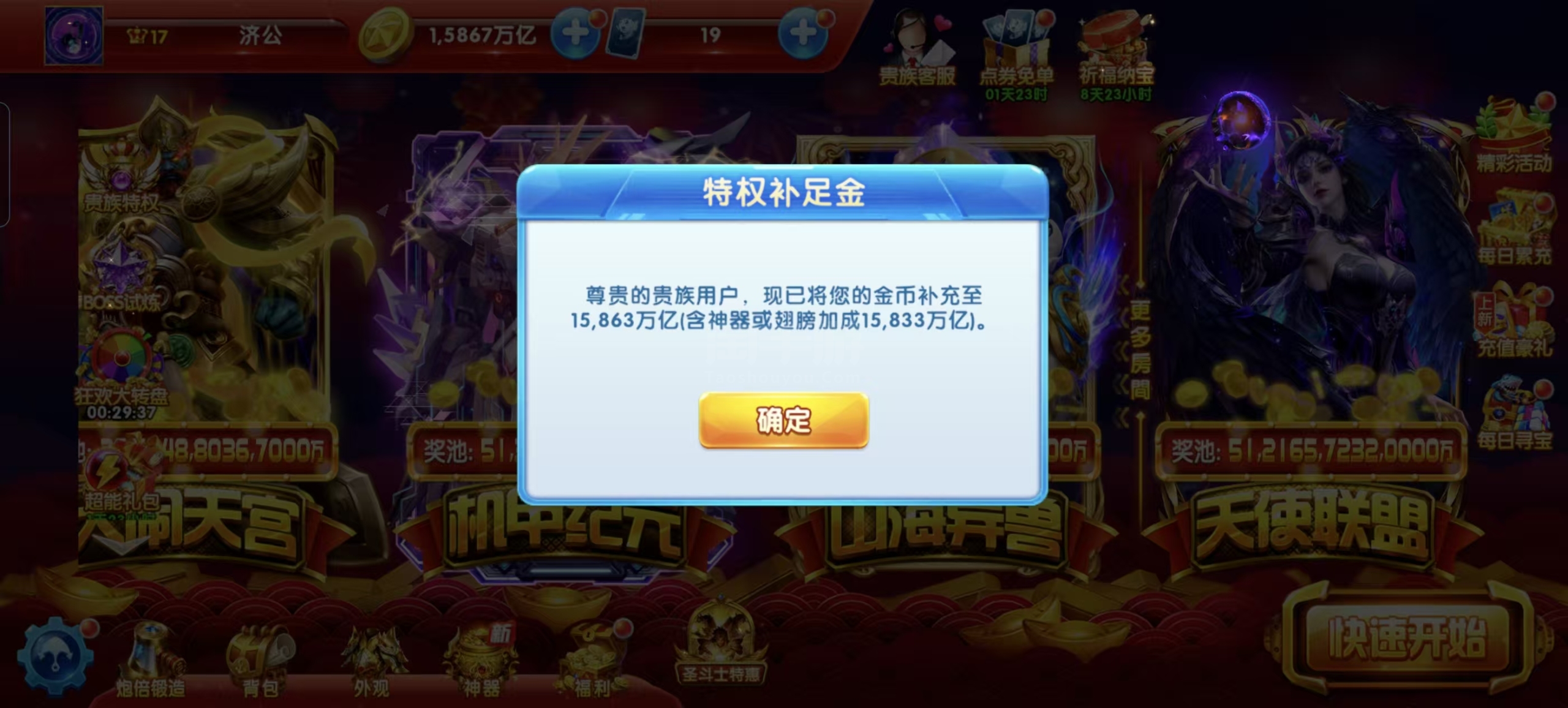 捕鱼大作战荣耀渠道v17 13件套 全技能、巅峰满级、380炮 金币加成1325 纯救济1.5兆(带概率翻倍)多战神出战 低天数 高成就 爆率好 全可换绑