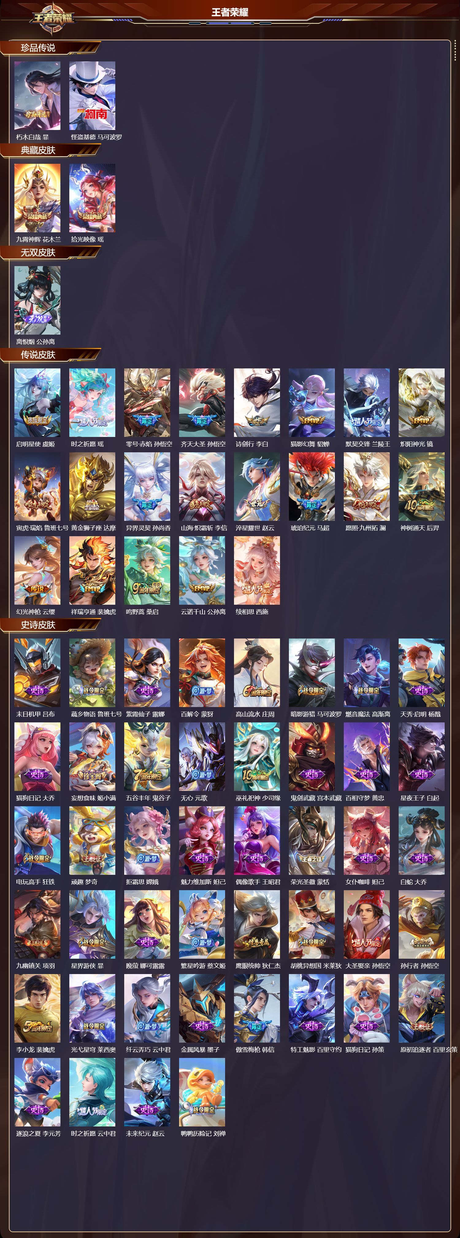 苹果QQ/至尊星耀/336皮肤/126英雄/2典藏/0珍品无双/1无双/2珍品传说/21传说/89史