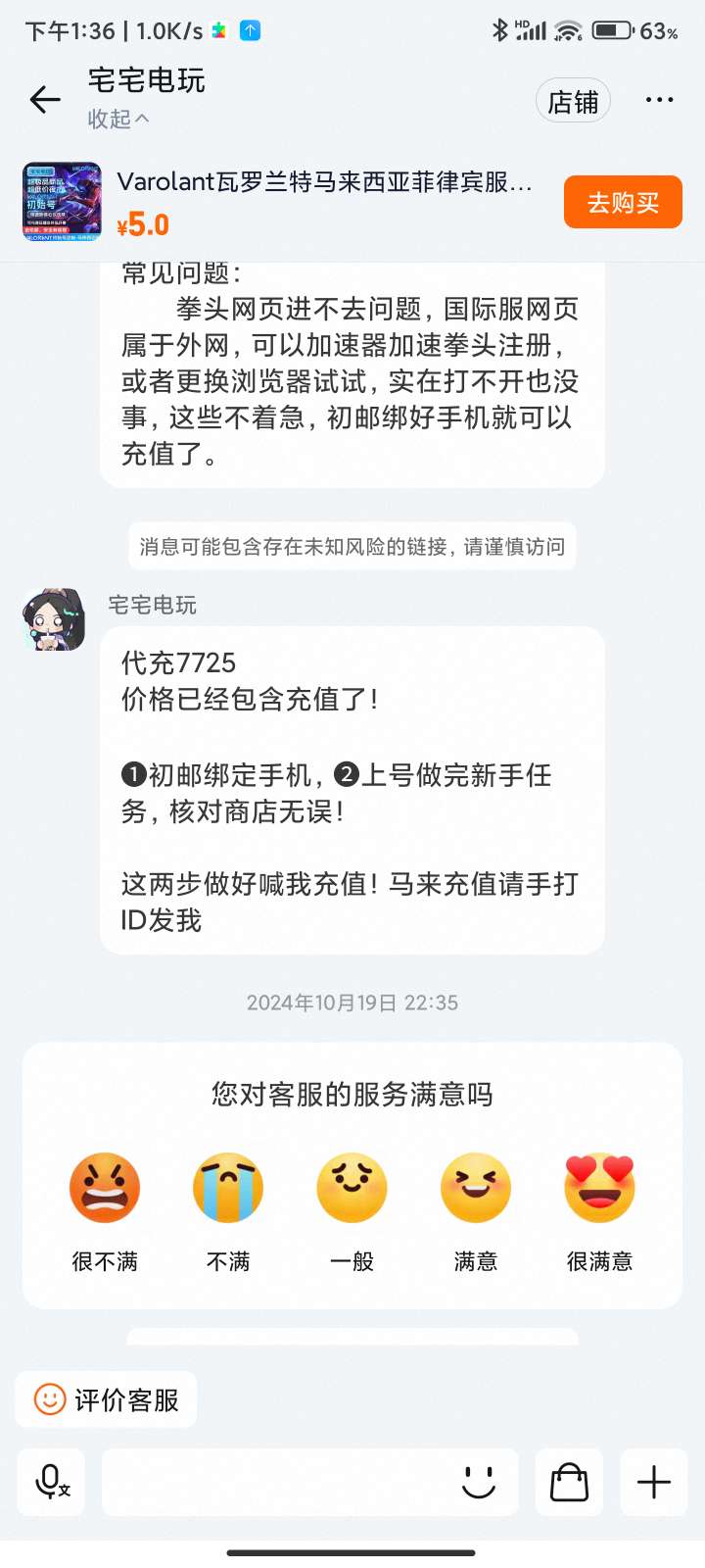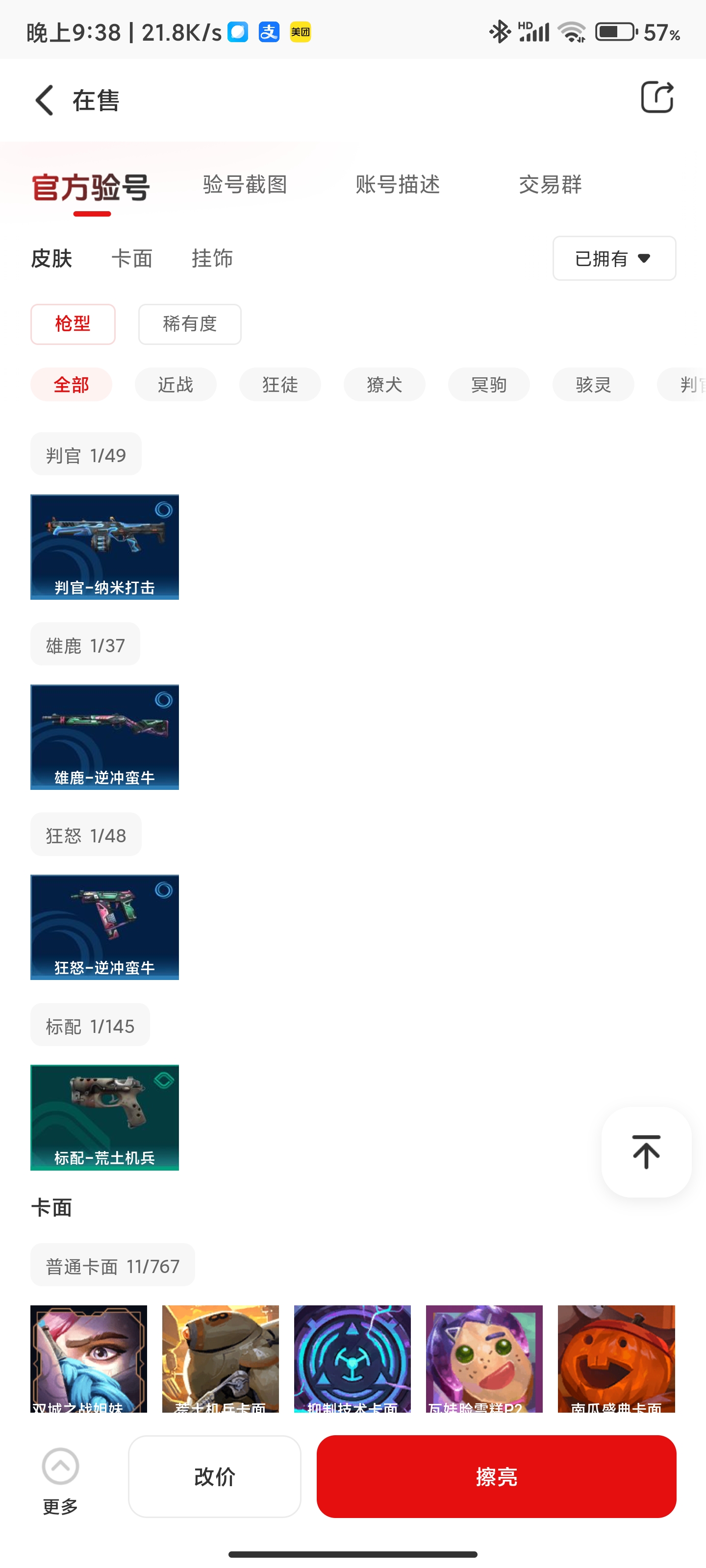 通过App,与卖家商议价格及保险,并向卖家索要账号最新截图,确认后下单购买。