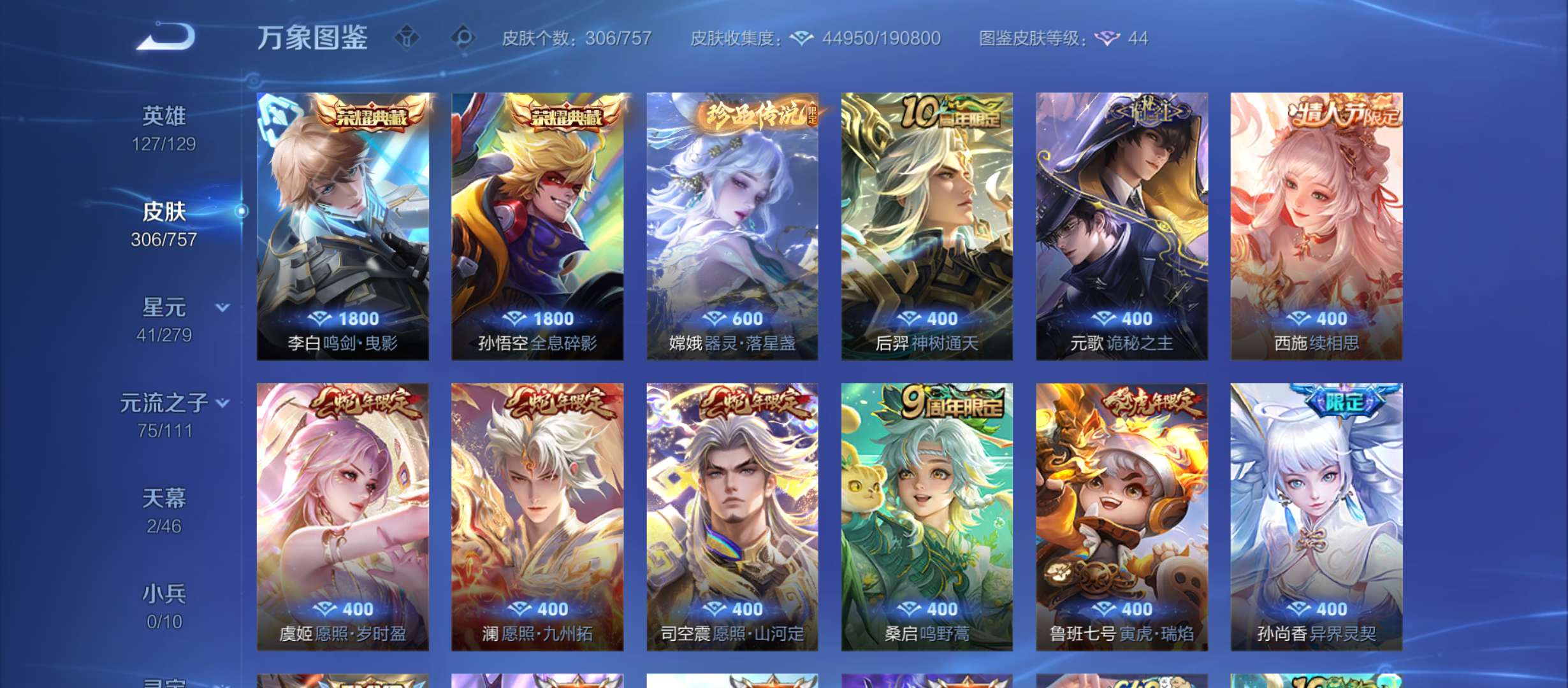 127个英雄306个皮肤两典藏