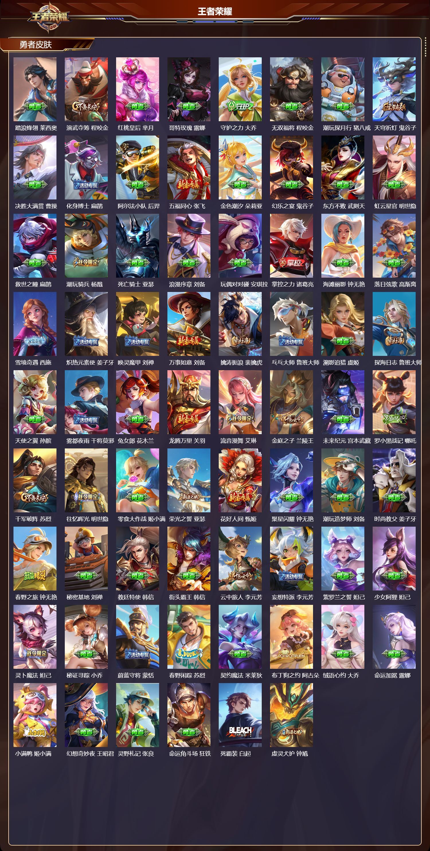 安卓QQ/至尊星耀/285皮肤/127英雄/1典藏/0珍品无双/0无双/2珍品传说/24传说/83史
