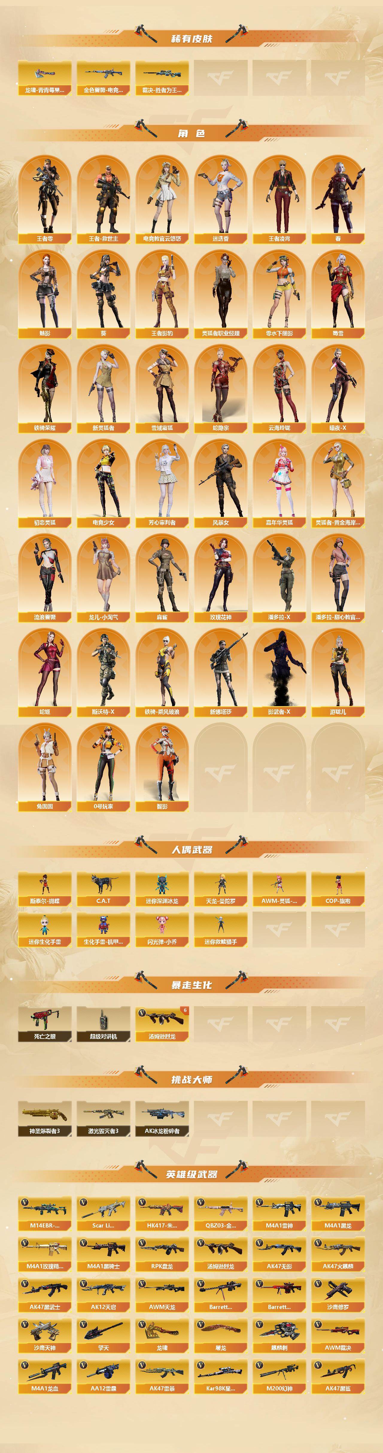 【热门武器】:传说灵眸,QBZ03-金色蔷薇*2,M14EBR-玄武,Scar Light-白虎,HK417-朱雀,M200-幻神,M200-竞技荣光,死亡之眼,荣耀世冠-雷神,柯尔特-冠军之特,荣耀世冠-柯尔特,Kar98K-星神,金色小号,C.A.T,M4A1-黑骑士*3,汤姆逊-烈龙*8,RPK-盘龙,斯泰尔-蝴蝶,USP-雷暴