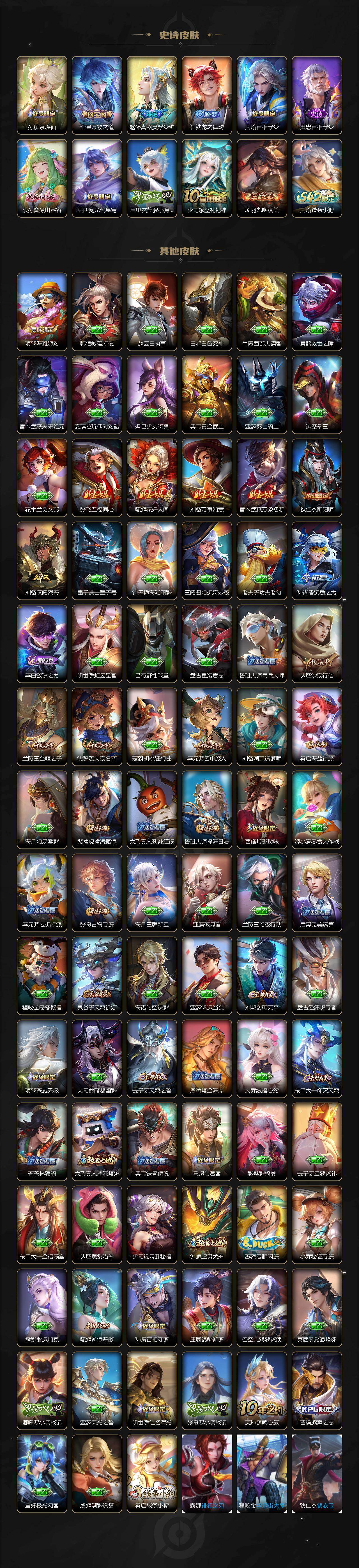 【限定皮肤】:大乔绒语心约,姜子牙天穹之誓,狄仁杰阴阳师,赵云皇家上将,孙尚