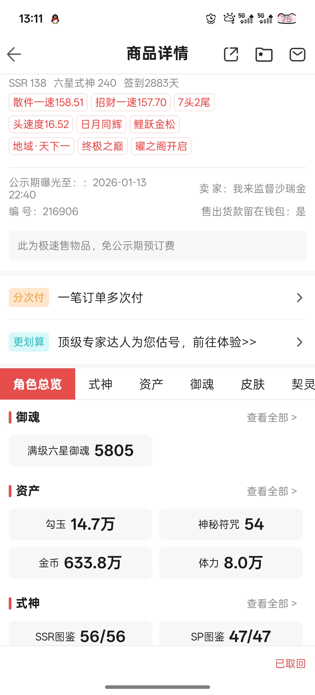 通过App,与卖家商议价格及保险,并向卖家索要账号最新截图,确认后下单购买。