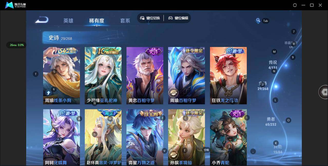 实名: 可修改 贵族等级: V6 英雄数: 104 皮肤数: 114 珍品传说