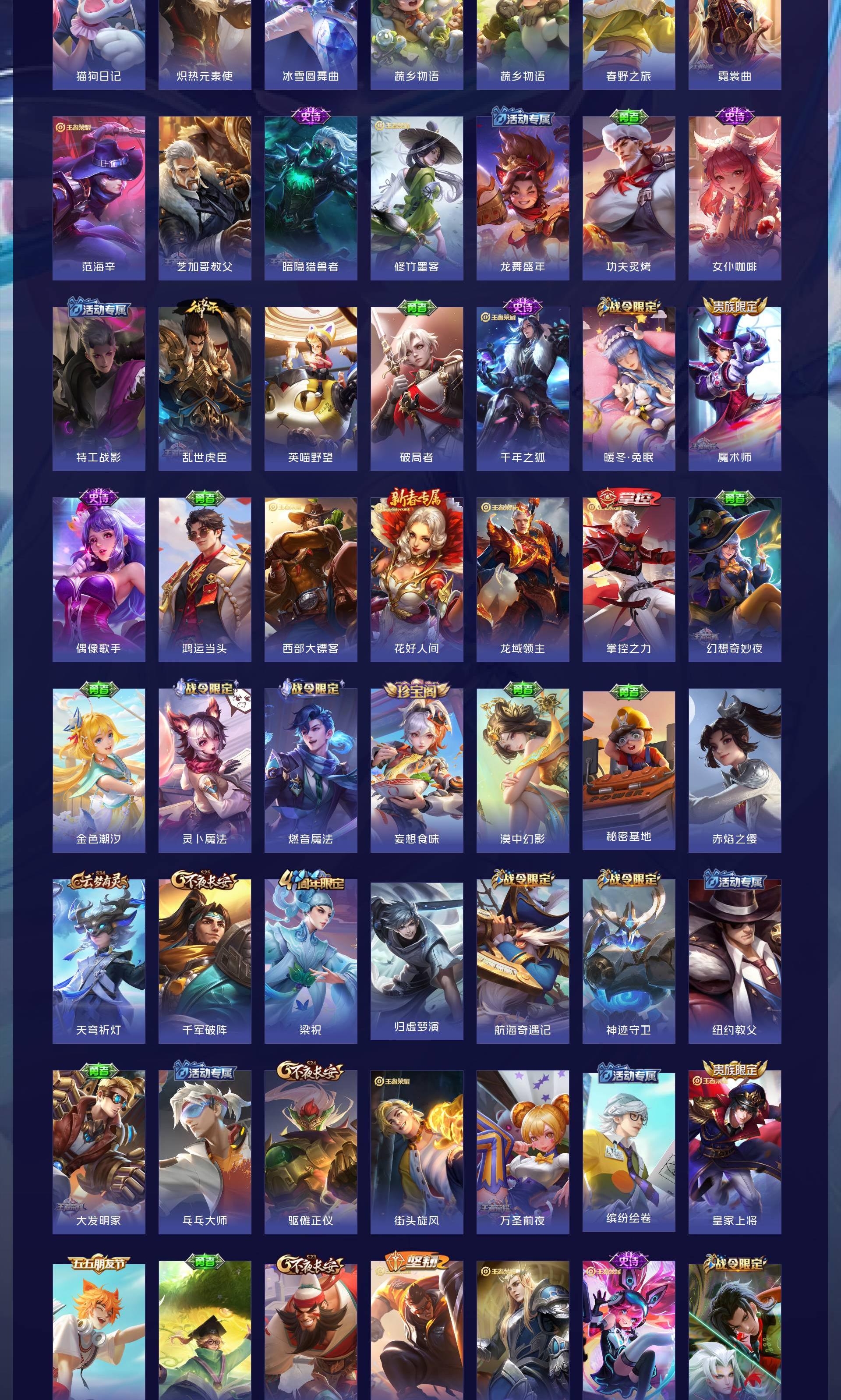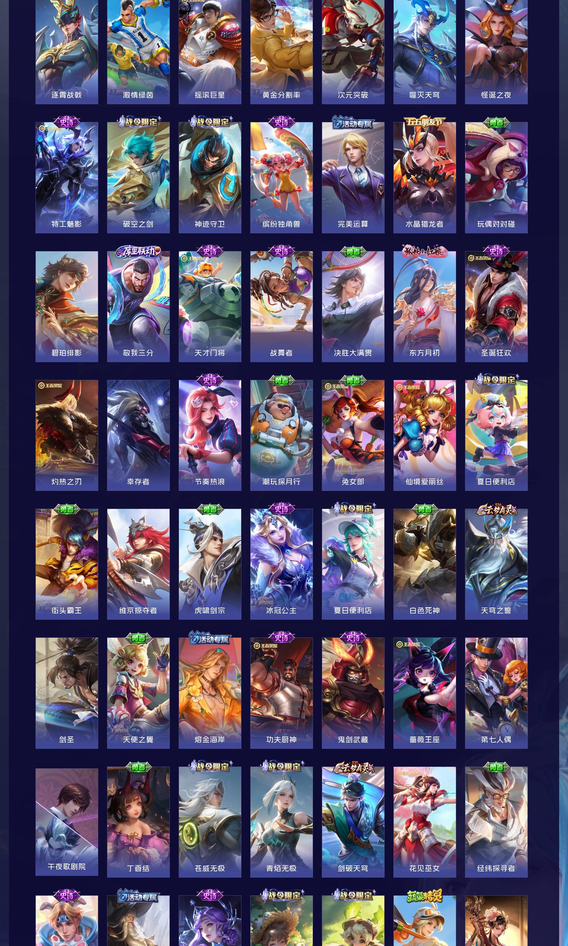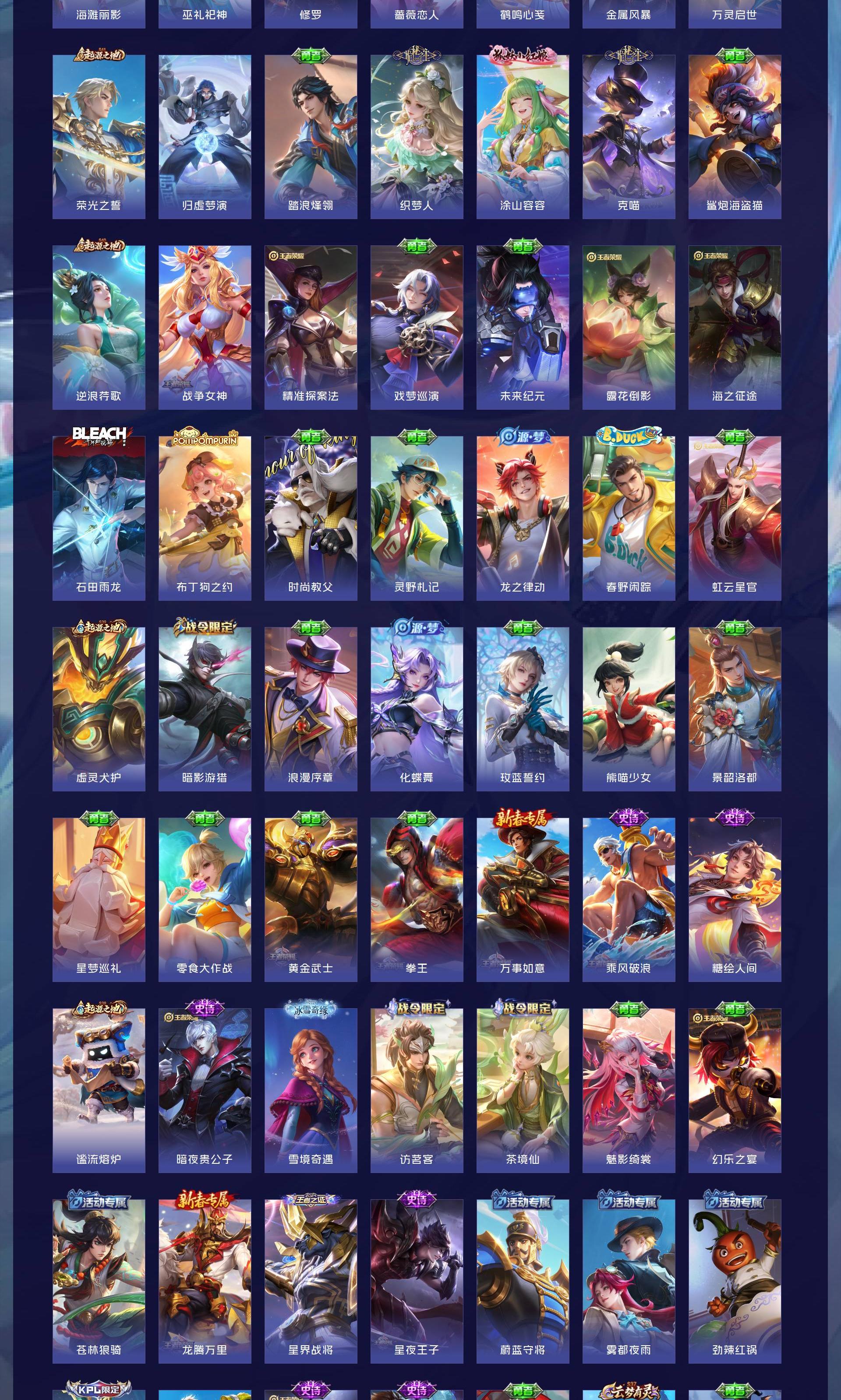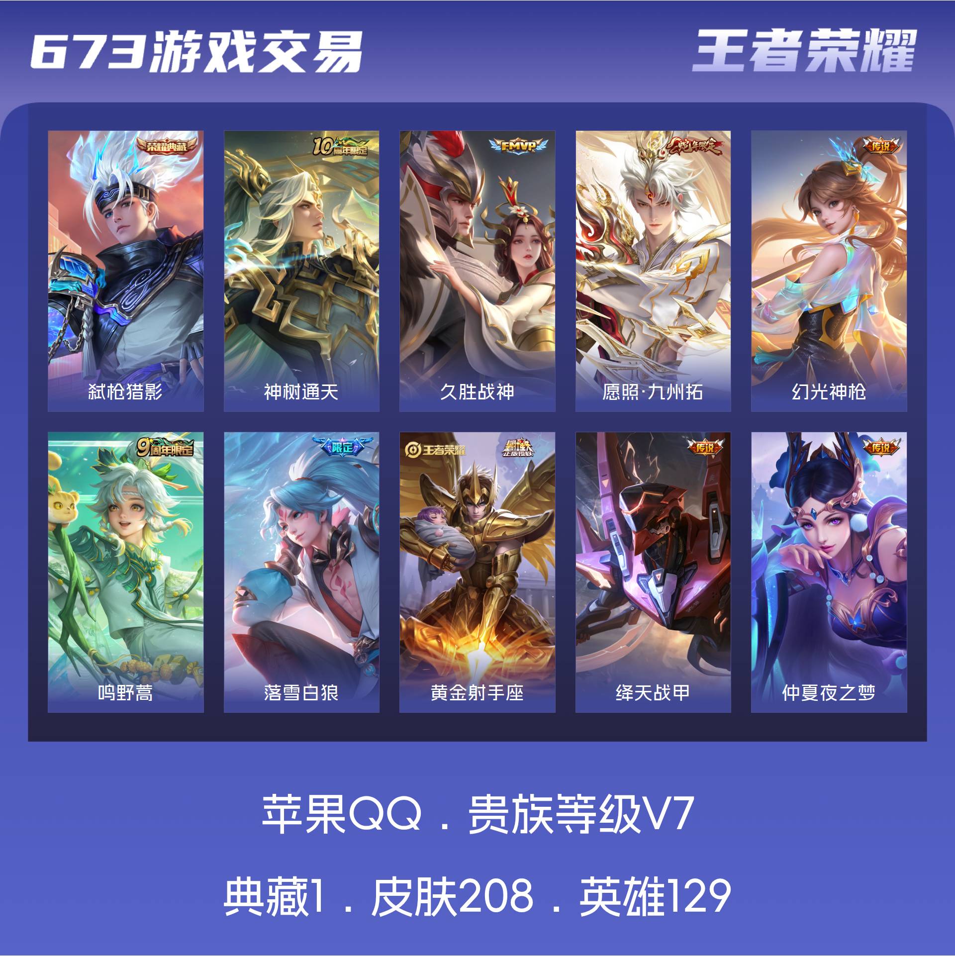 V7 皮肤208 英雄129 最强王者 荣耀典藏1 星传说1 传说9 其他皮肤204