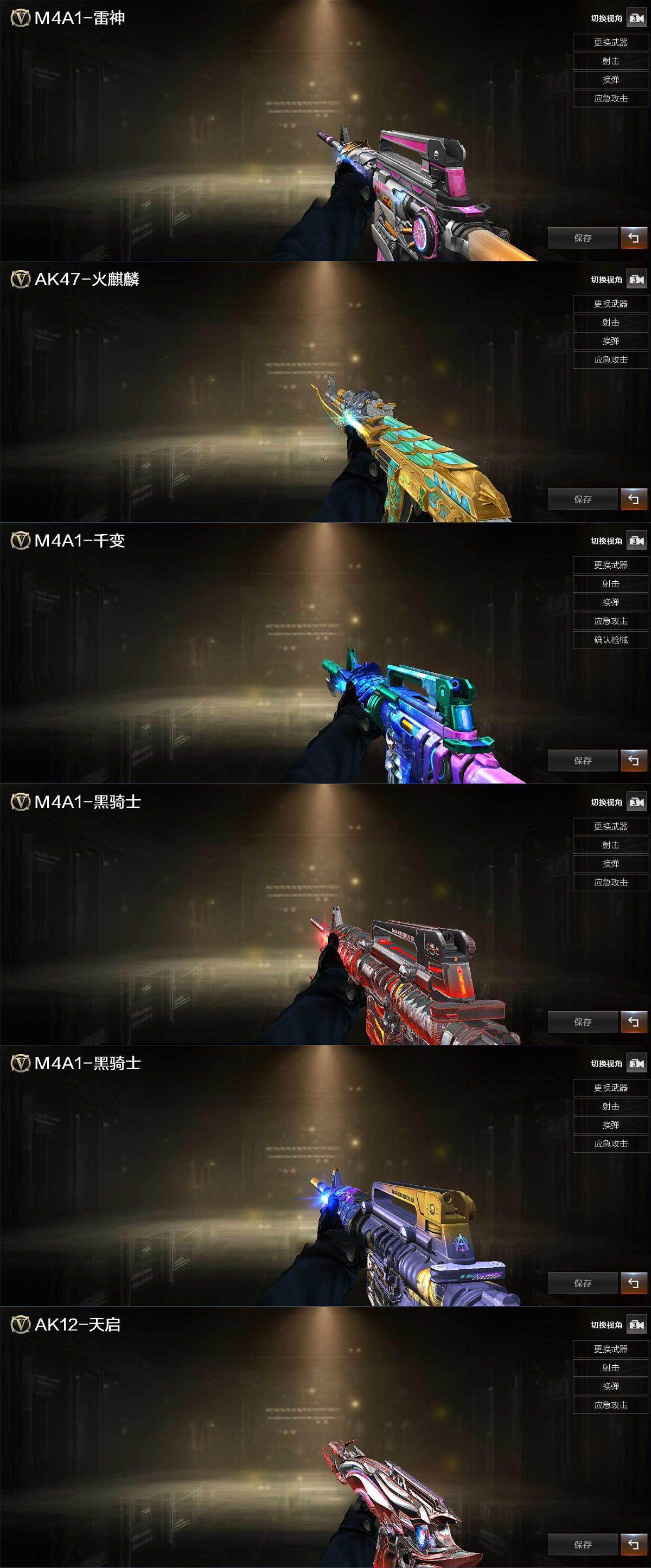 【皮肤】:雷神-神秘按键 皮肤,火麒麟-大唐荣光,M4A1-千变-孔明皮肤,黑骑士-暗月,黑骑士-破界 皮肤,天启-暗月