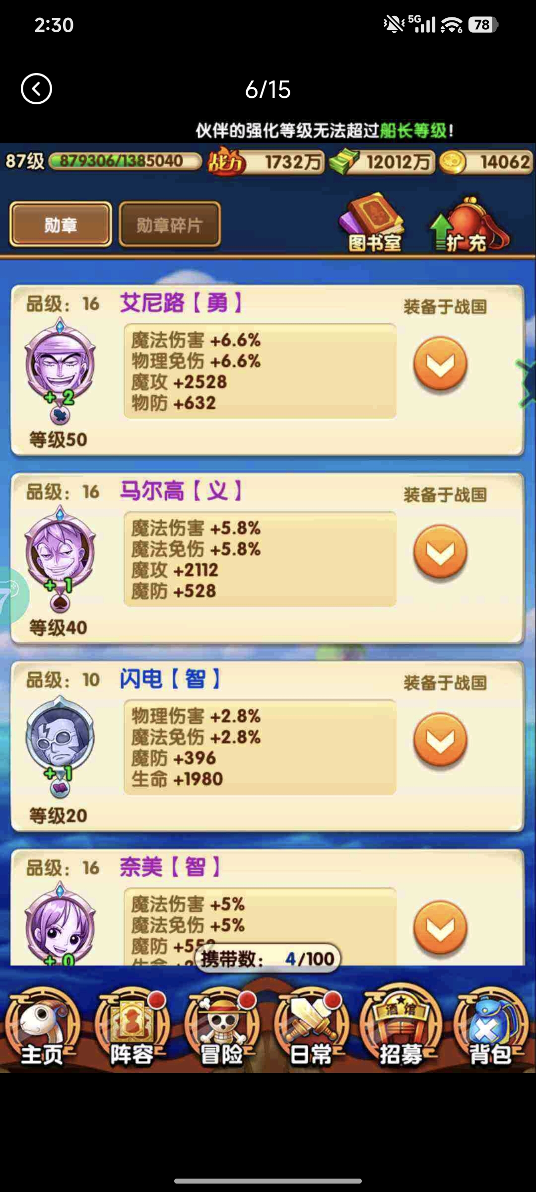 单人无替补稀皮战国,还有山治、红发麦哲伦高级称号