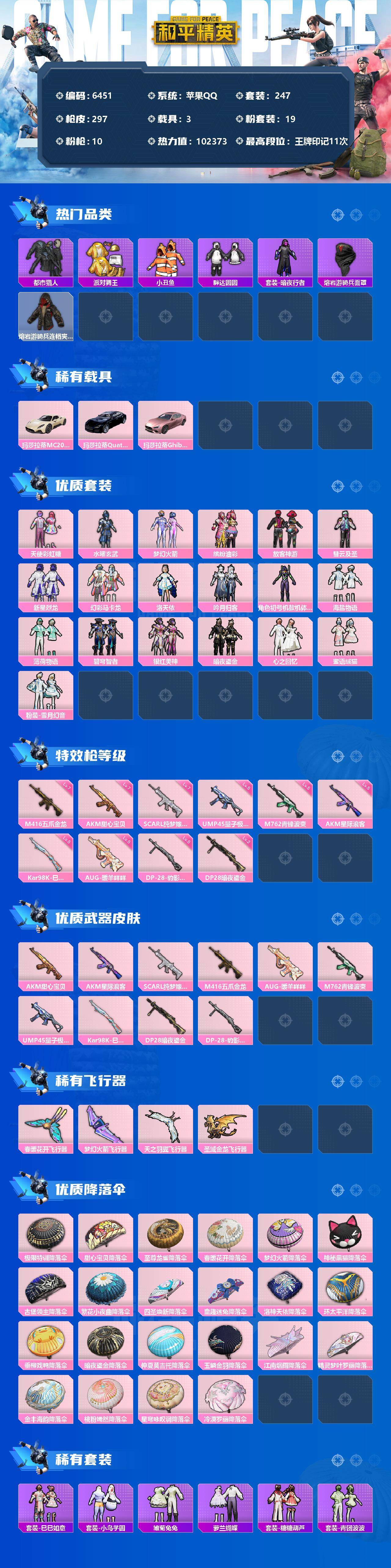 【6451】19粉装-10特效枪-3载具-102373热力值-11印记-247套装-296枪皮【热门品类】:赤蝎幽灵,都市猎人,派对舞王【粉色套装】:梦幻火箭,初号机款机体服【稀有背包】:萌熊伴侣背包