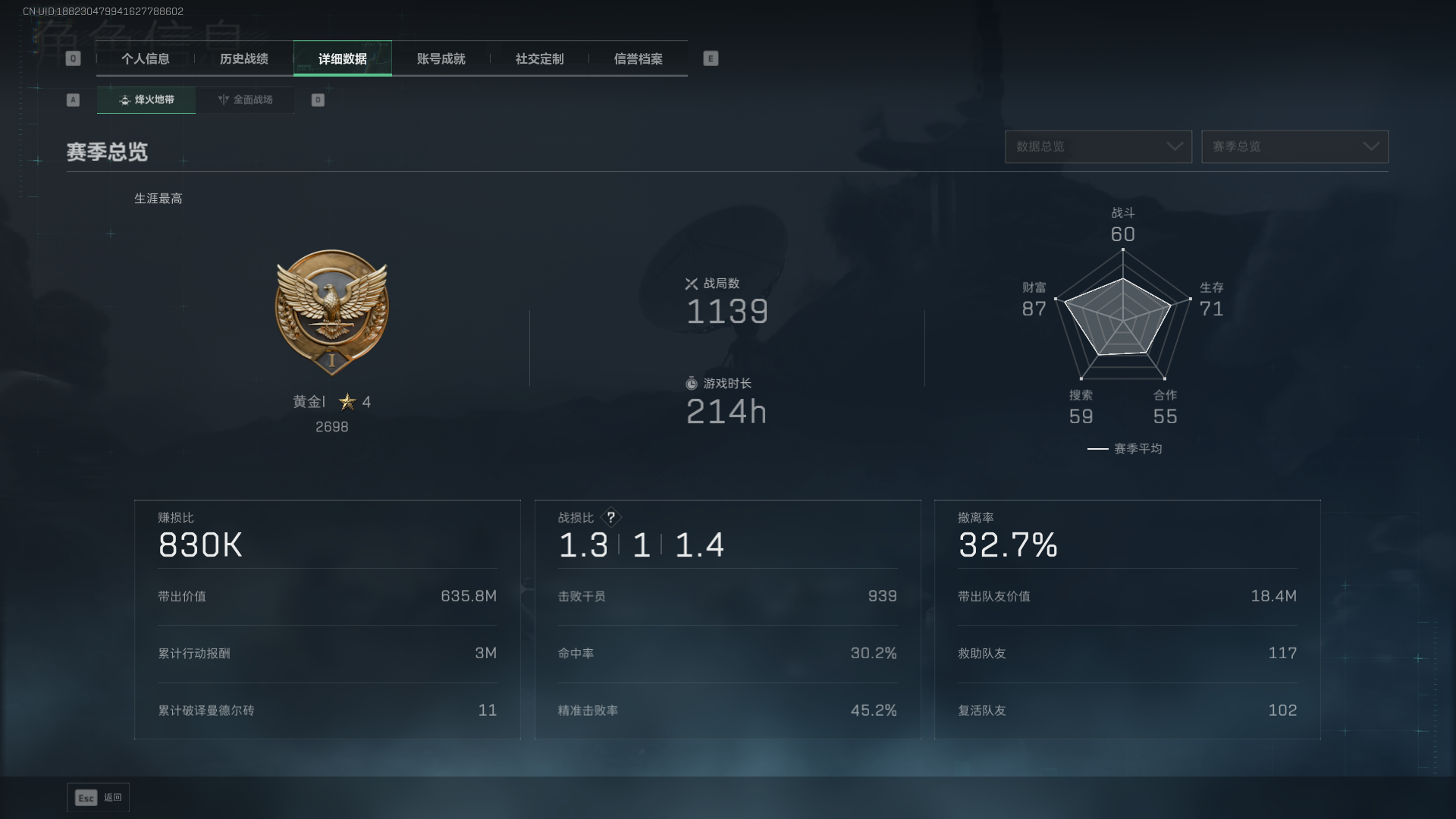4干员 水墨云图 【总资产(M)】22.18【哈夫币】207.28