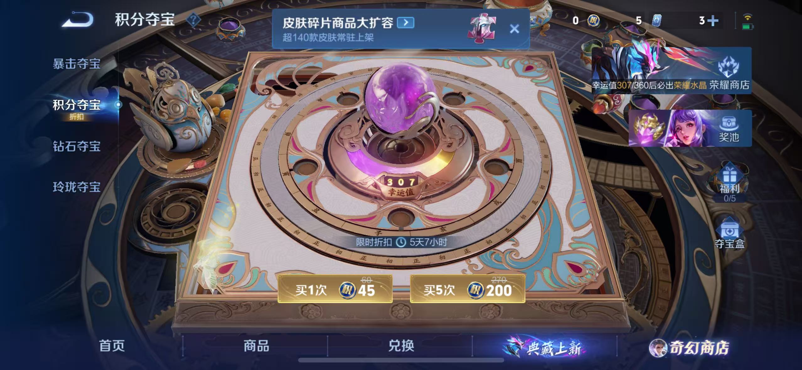 181皮肤-127英雄 夺宝307抽 准备出水晶