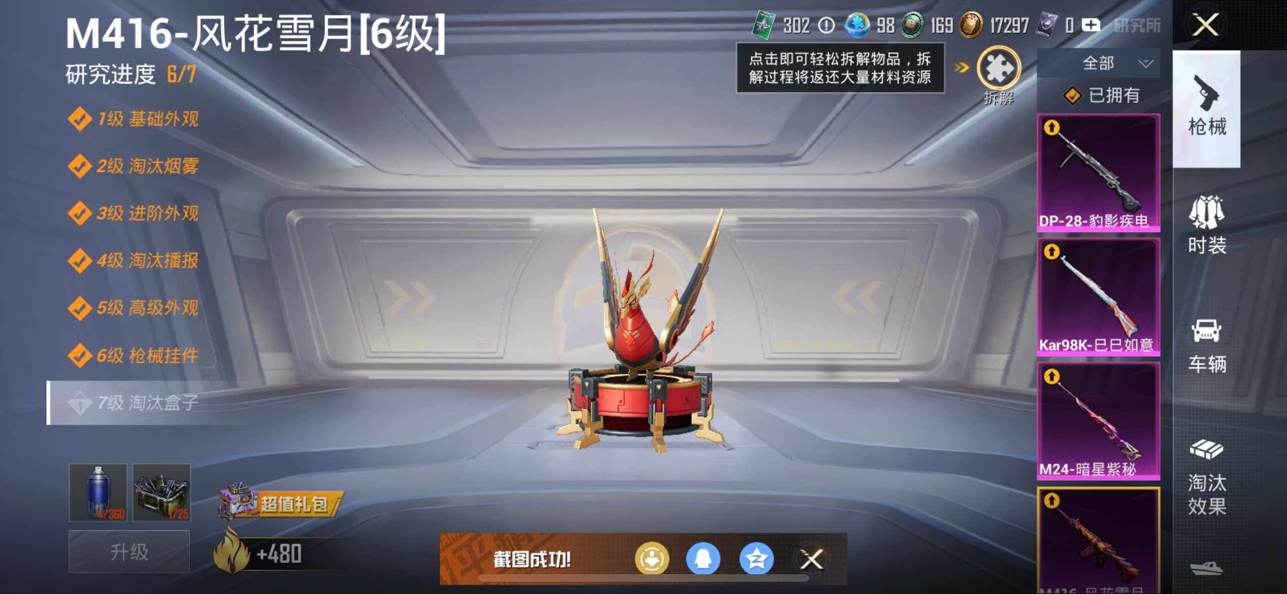 131套装/枪械4/装备169/载具1/战备114/王牌印记7/热力值50338/