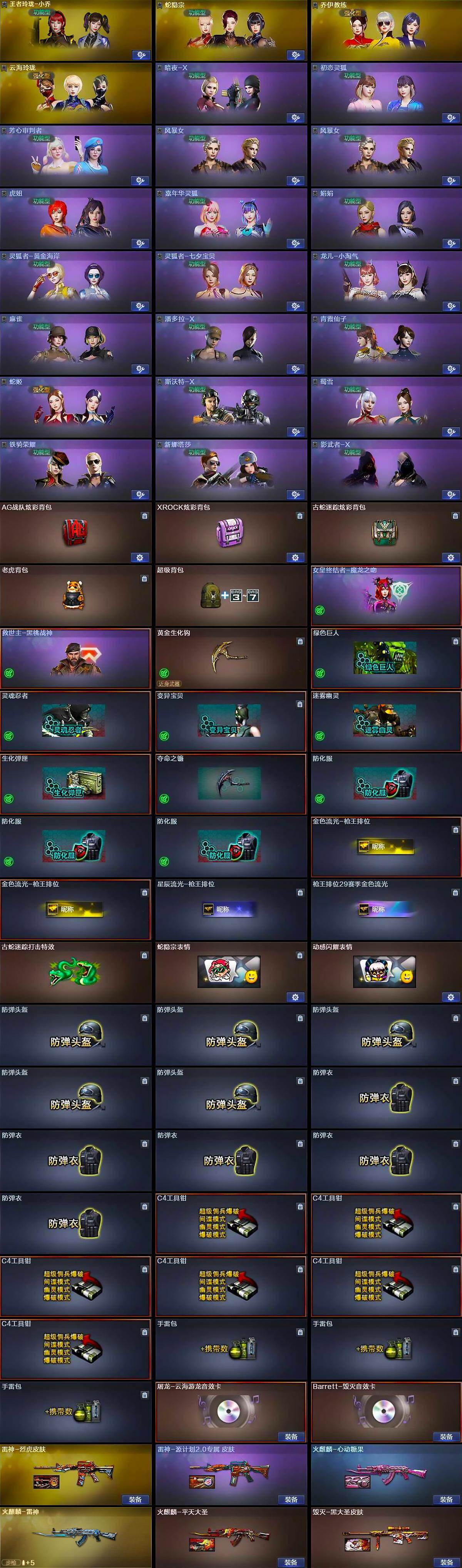【皮肤】:雷神-烈虎皮肤,雷神-源计划2.0专属 皮肤,火麒麟-雷神,火麒麟-平天大圣,火麒麟-心动糖果,毁灭-黑大圣皮肤,AK47-B-常胜将军-刘备,AK47-B