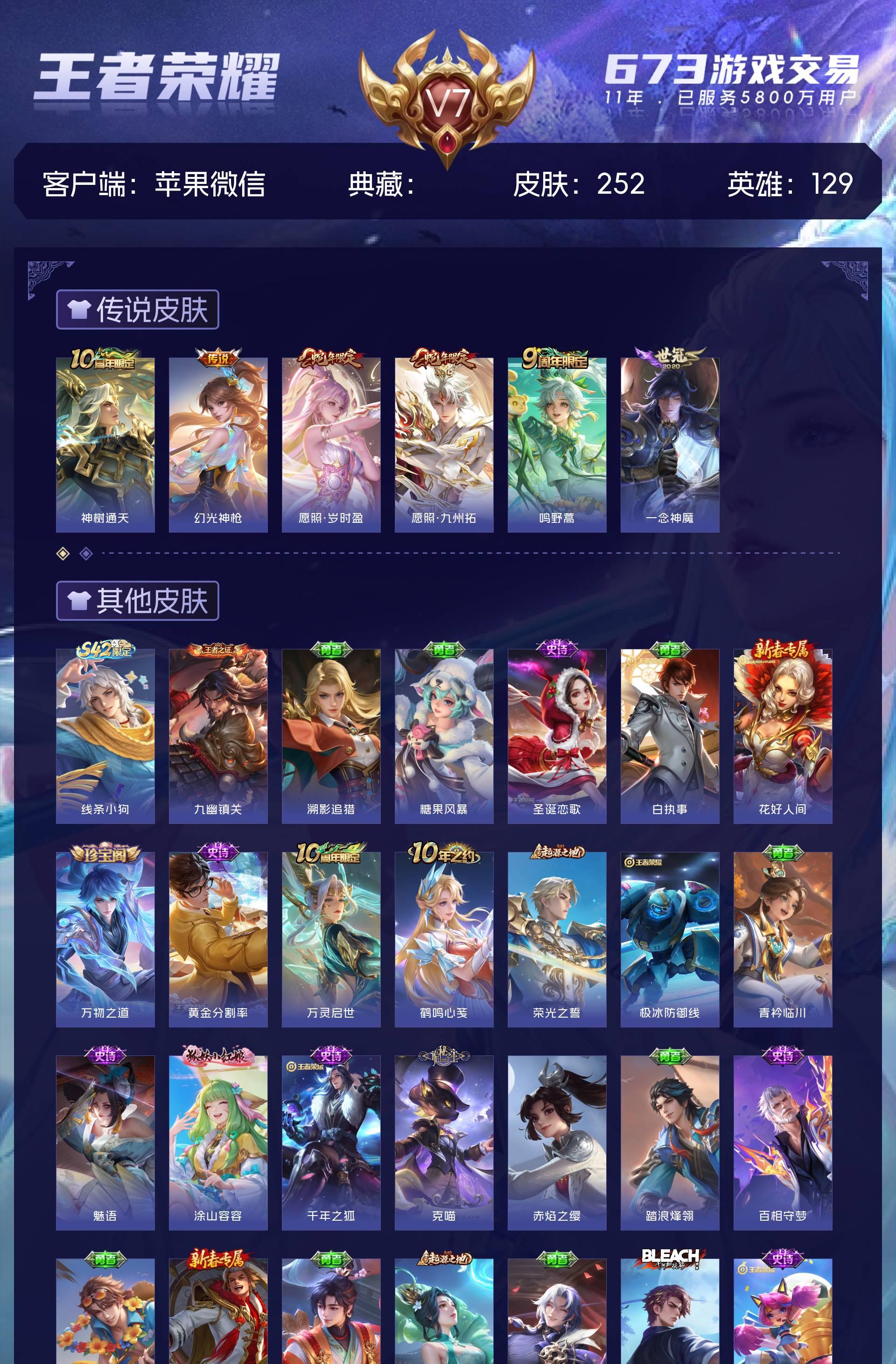 V7 皮肤252 英雄129 至尊星耀 传说6 其他皮肤251