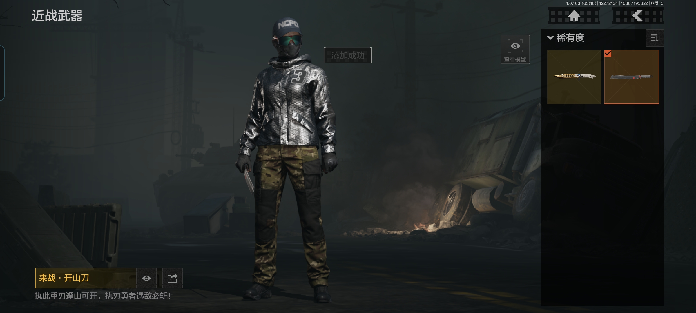MWT4160安卓Q-等级30-仓库价值13m-科恩币338994-【套装】 都市夜影套装 森林守望特种服 【枪皮】 【近战武器】 赢家匕首 来战·开山刀