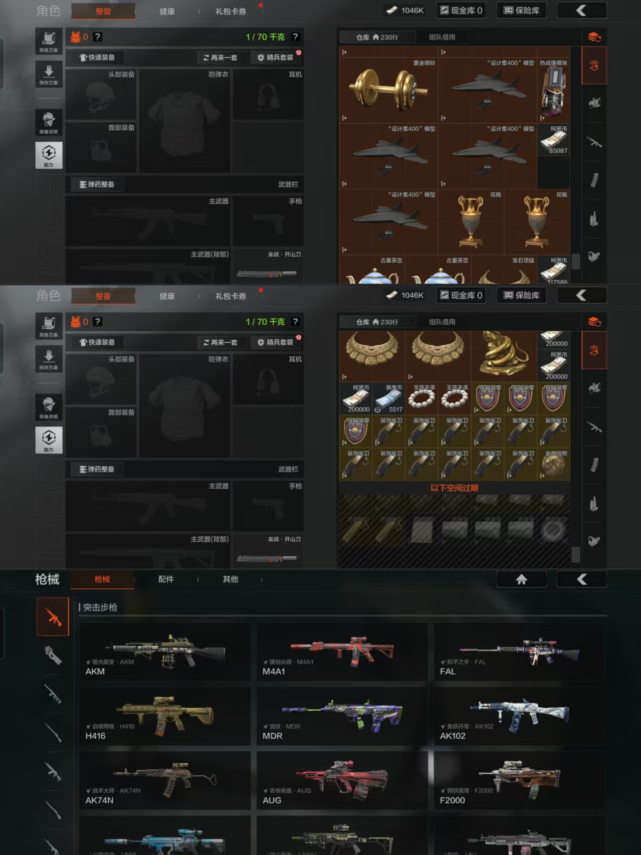 MWT4248【 金枪5 套装7 开山刀】安卓Q-等级30-仓库价值32.9m-科恩币1046k-【套装】 财团之手作战套装 等高线运动套装 高地武士.套装 王国卫队礼装.轻装 鎏金街头套装 都市夜影套装 【枪皮】 告丧夜曲.AUG 旧王圣谕.QBZ191 利齿风暴.MPX 旧王圣谕.VSS 棱光裂变.QBU191 【近战武器】 开山刀 工兵铲