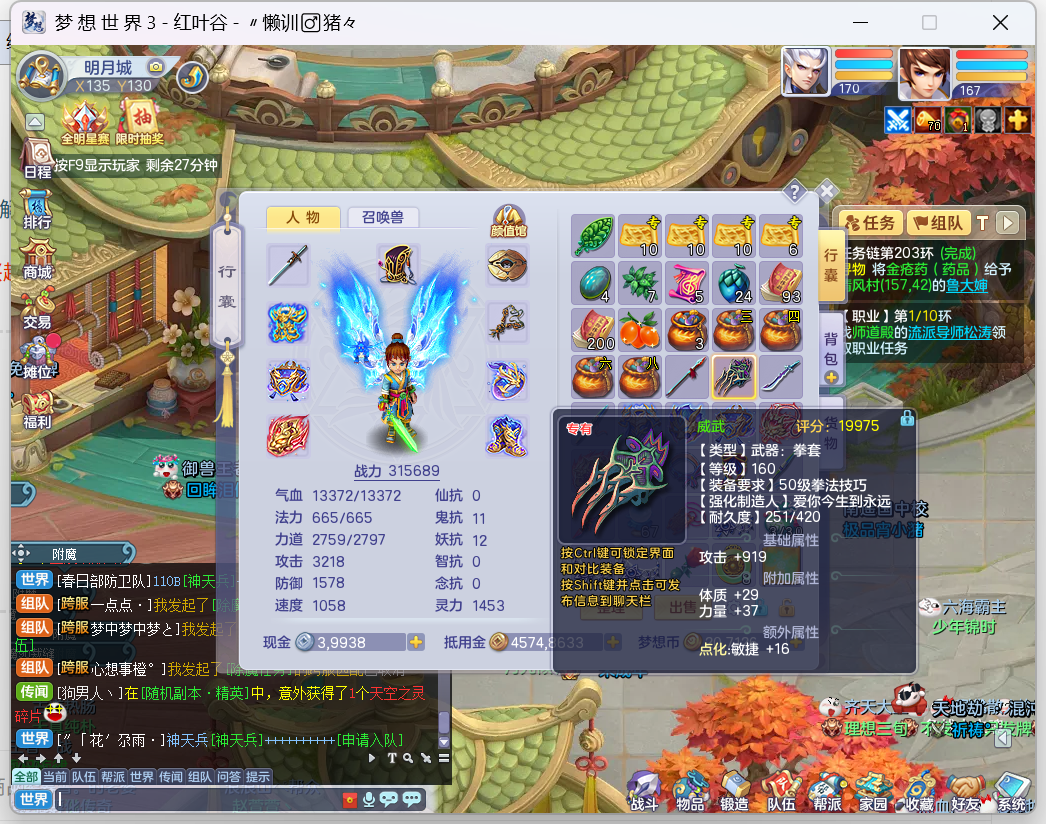 满修、有连击剑,灵巧鞋子。满G拳和刀。星辉饰品3还差300积分就有了,可以改邮箱密保手机号