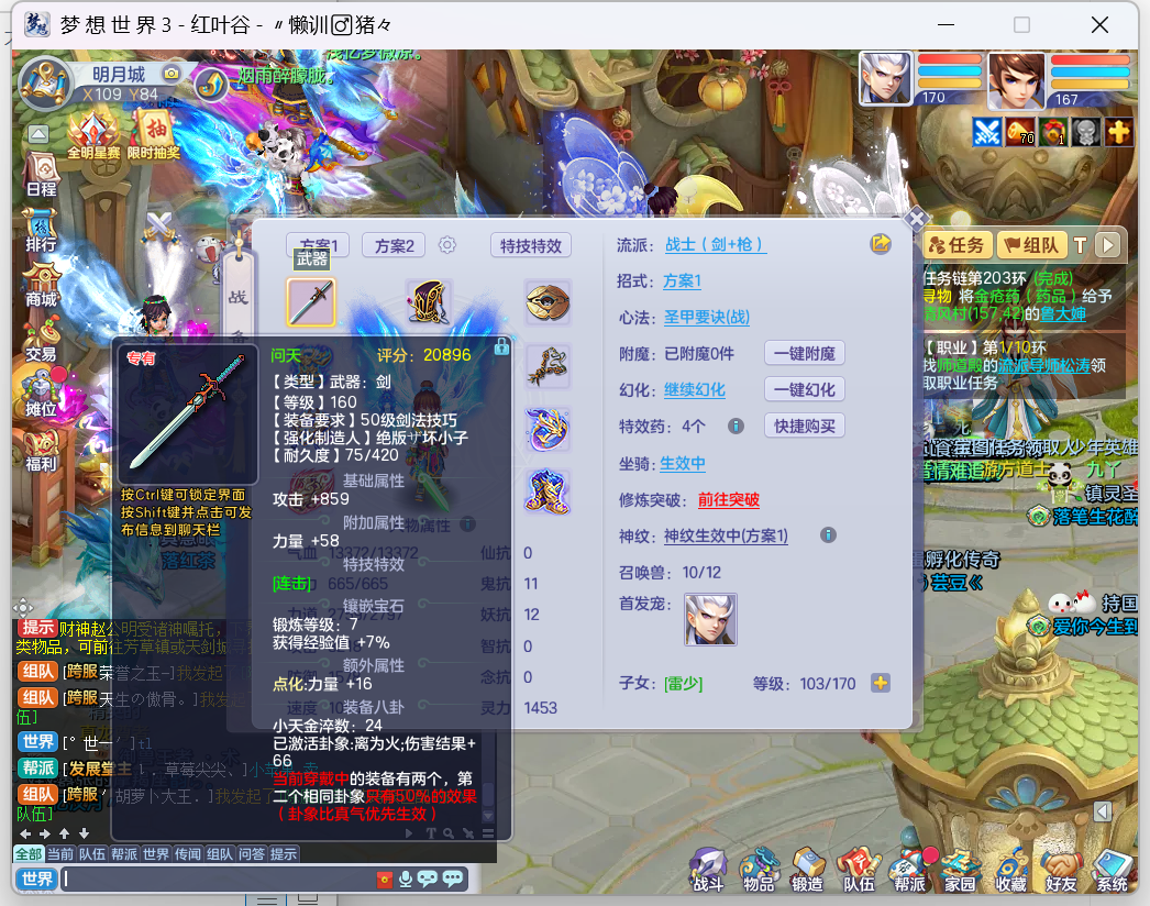 166级剑枪战士,有连击剑灵巧鞋子