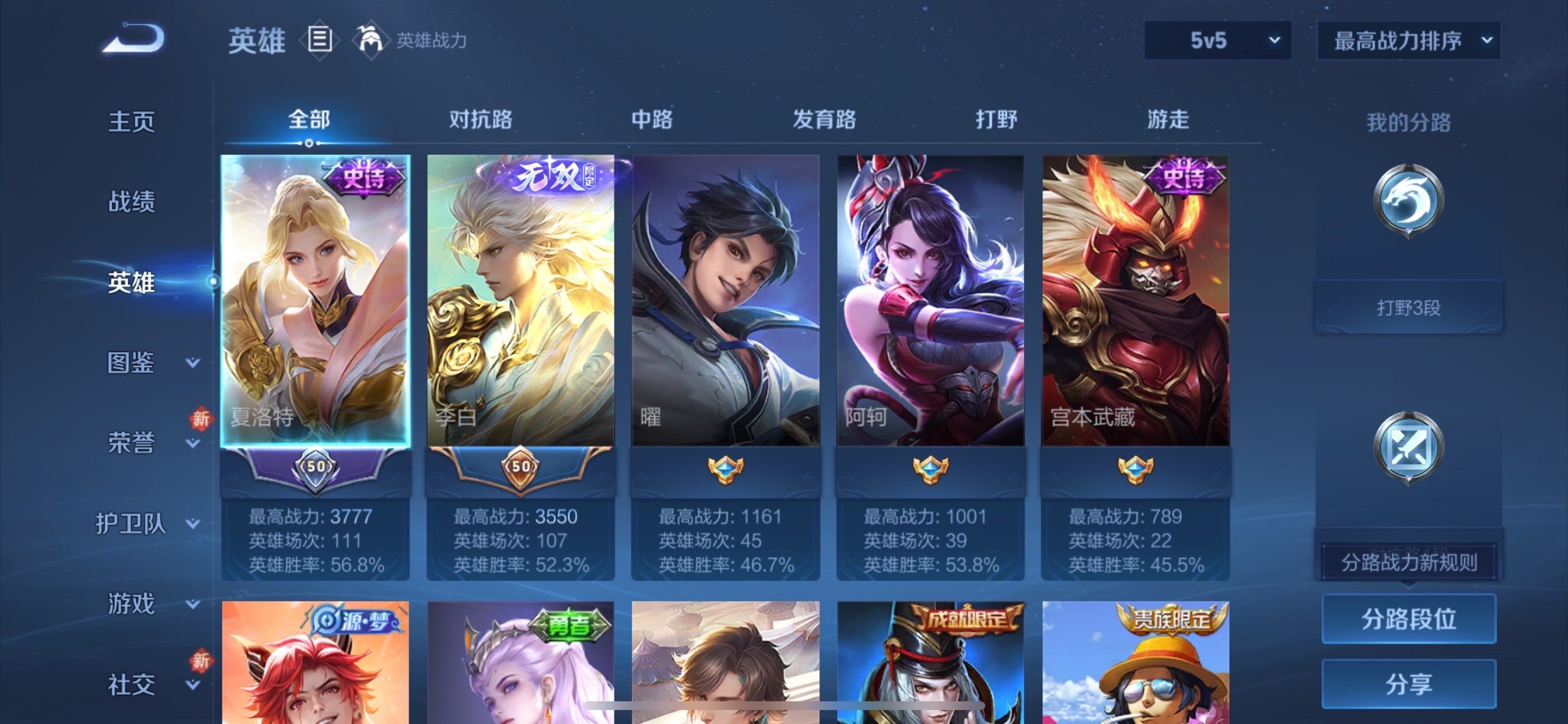 可换绑【优质打野号 李白无双 马超琥珀纪元】1按键 五级铭文20 可二次KK7