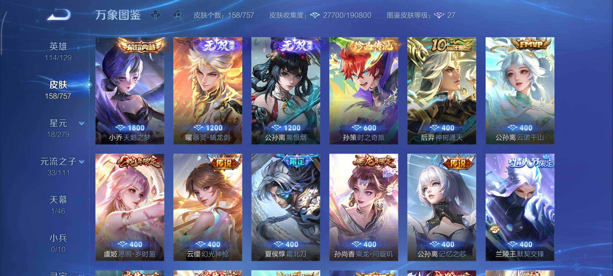 可换绑【公孙离全皮 小乔典藏 曜公孙离双 孙策珍品 多传说限定号】幸运值262