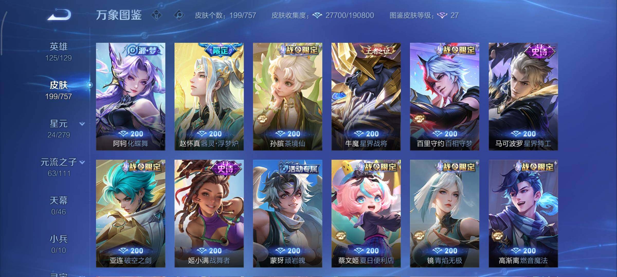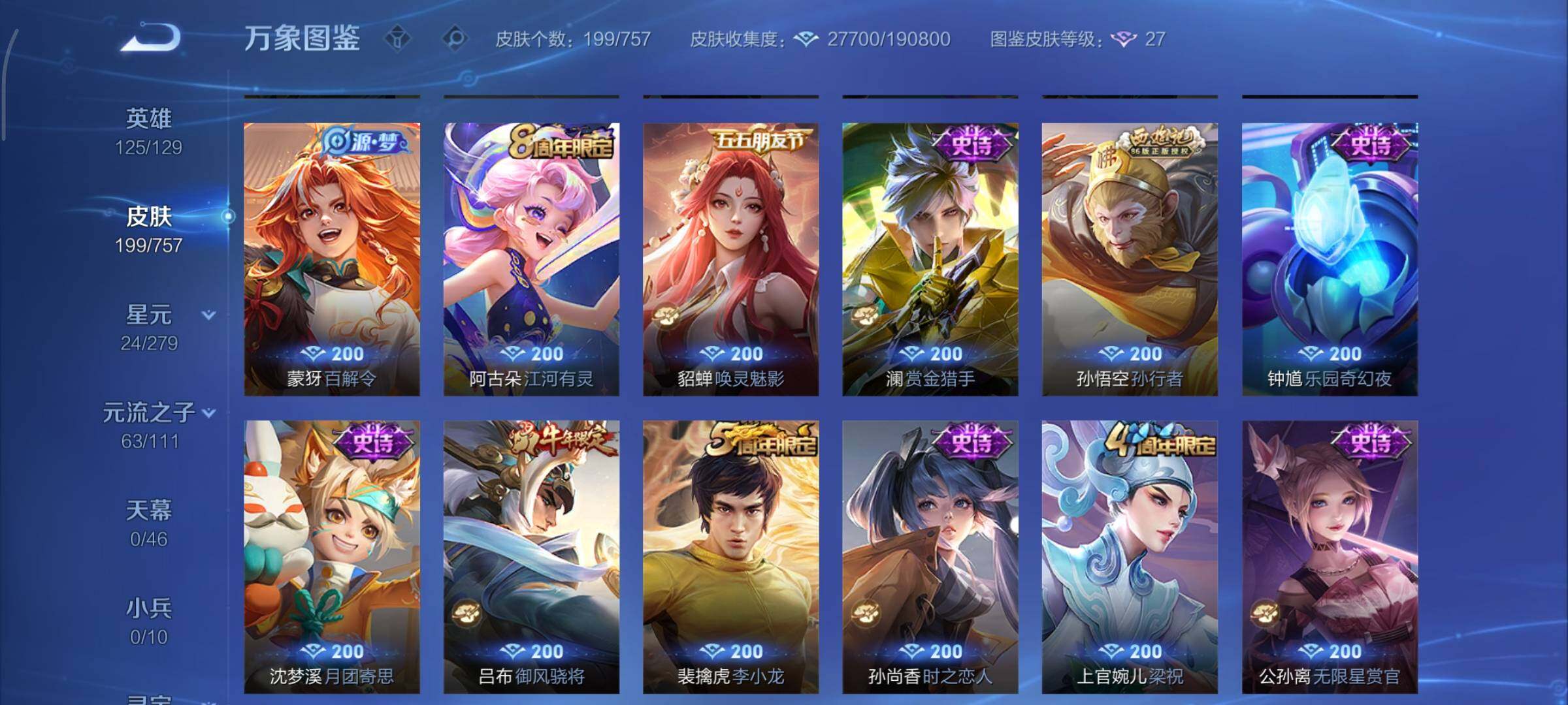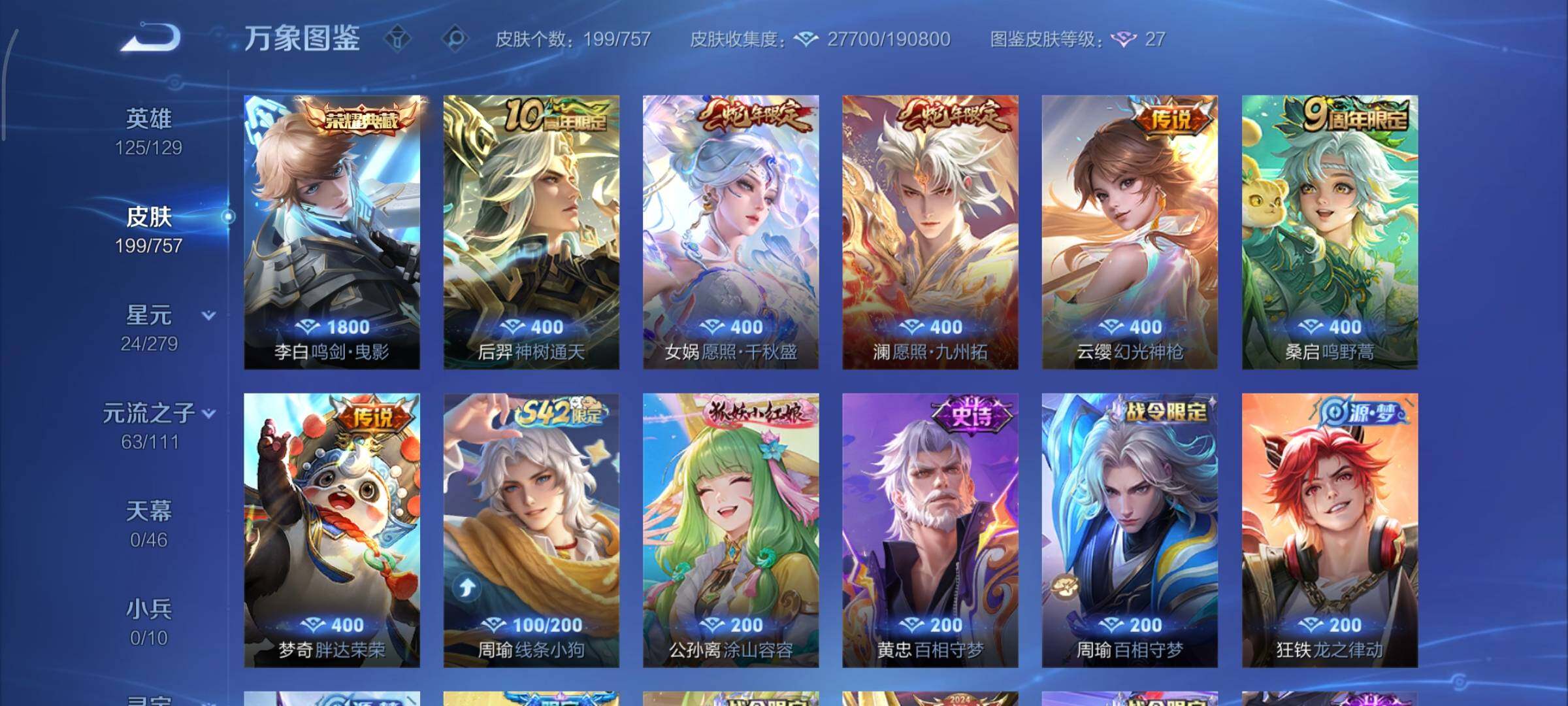 /可换绑【性价比优质号 李白典藏 蛇年限定】4按键 6王者印记 五级铭文90 可二次KK7719 安卓Q-V7-199皮肤-1典藏皮肤-6传说-59史诗【英雄全皮】:空空儿全皮,影全皮【荣耀典藏】:李白鸣剑曳影【传说皮肤】:后羿神树通天,女娲愿照千秋盛,澜愿照九州拓,云缨幻光神枪,桑启鸣野蒿,梦奇胖达荣荣【限定皮肤】:蒙犽顽岩魄,蔡文姬夏日便利店,大乔绒语心约,虞姬