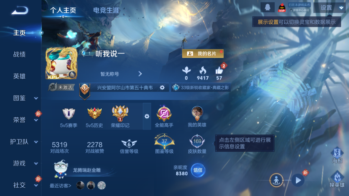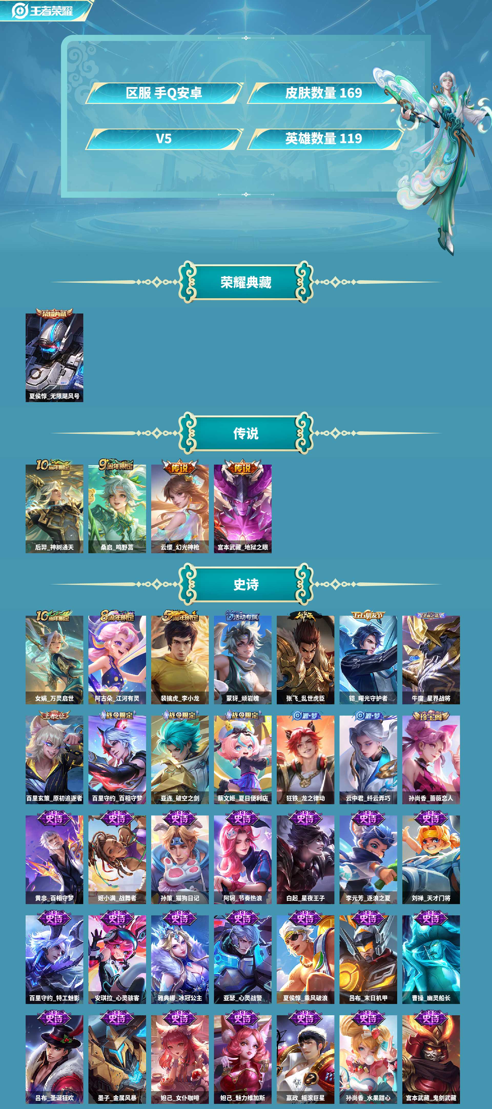 金标典藏夏侯/皮肤数量169印记总数9V5永恒钻石可修改类型
