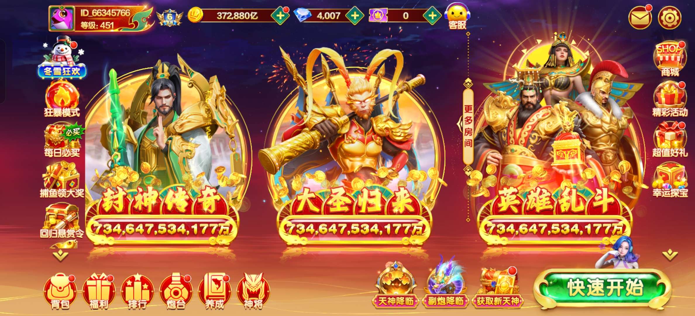 小米安卓机通用V6卖断9亿炮实炮4.5亿炮 37万亿 2级天神嫦娥4神将,能换绑 保证金商家安全可靠