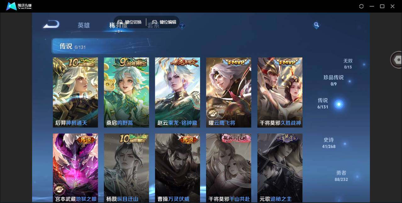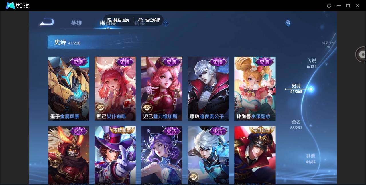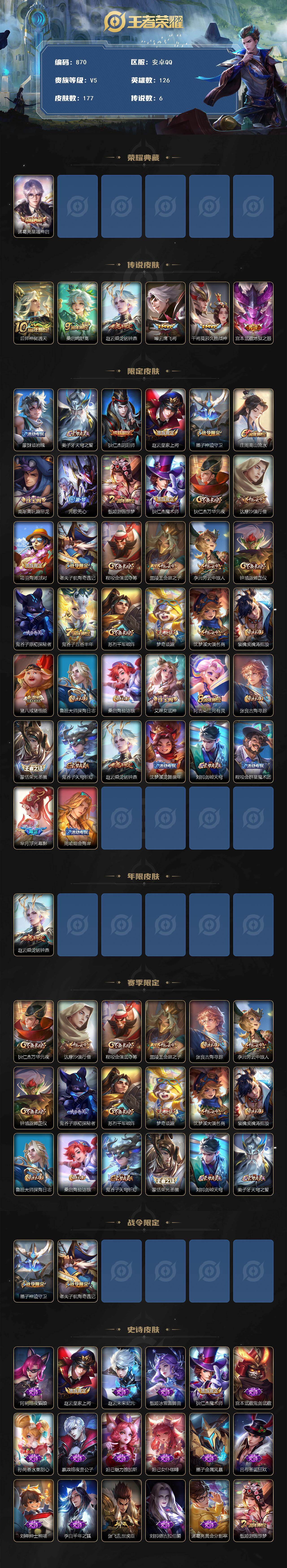 1992618 5200个紫星币 安卓Q-V6-永恒钻石IV段位-126英雄-177皮肤-1典藏皮肤-6传说-41史诗