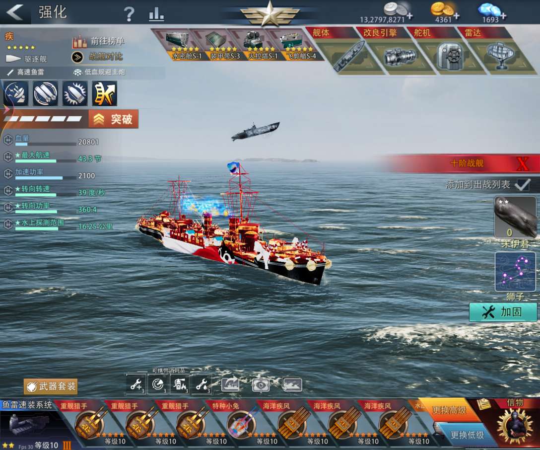 萨师俊全顶驱,黑豹1.5疾风,天梯战役双周边,驱逐都能到15万左右,巡洋航母可玩扎拉逆珊瑚岛桑战