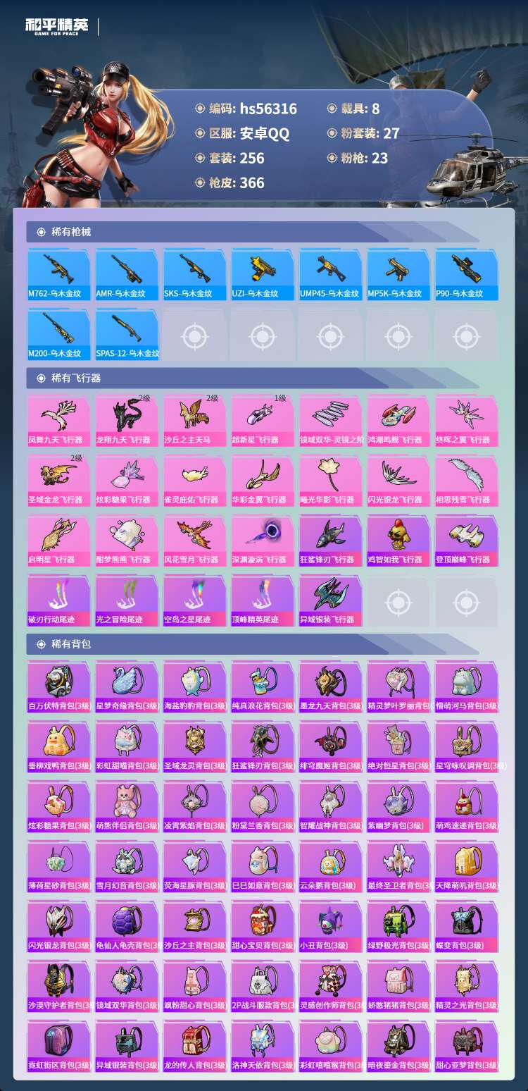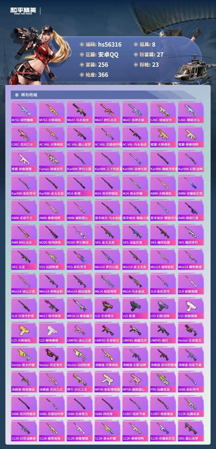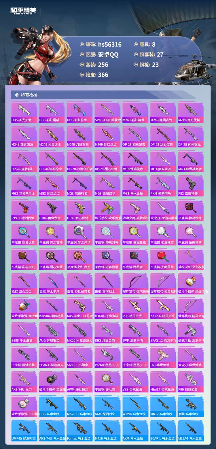 hs56316 安卓手Q-17王牌印记-有战神框-3红装-27粉装-23特效枪-8载具-141273