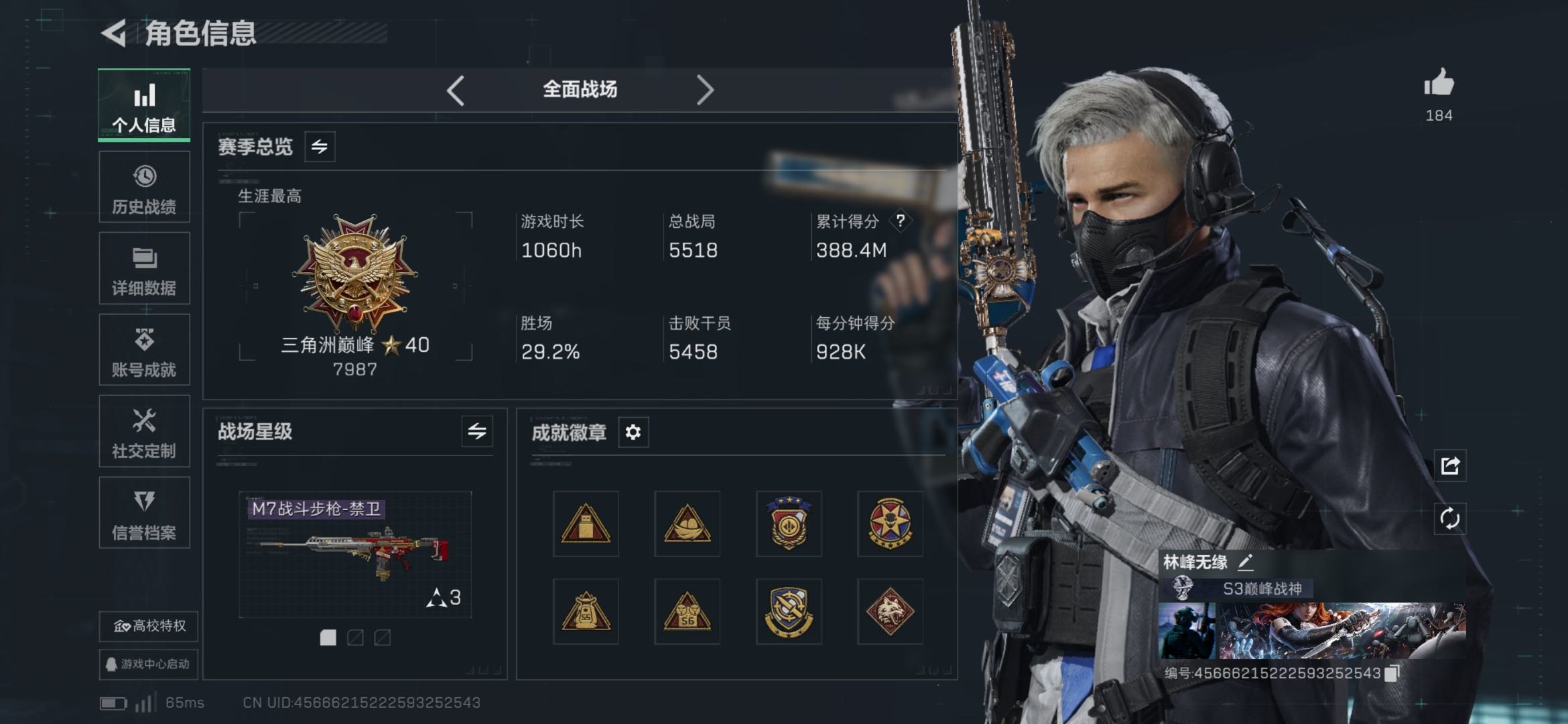 hssjz829 总资产388.28M,哈夫币 140833.3K,战场等级:50 上等兵,行动等级