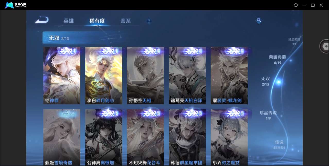ky v10无双贵族 可认证 安卓(q)区 426皮 8典藏 2无双 1珍品传说 41传说 15