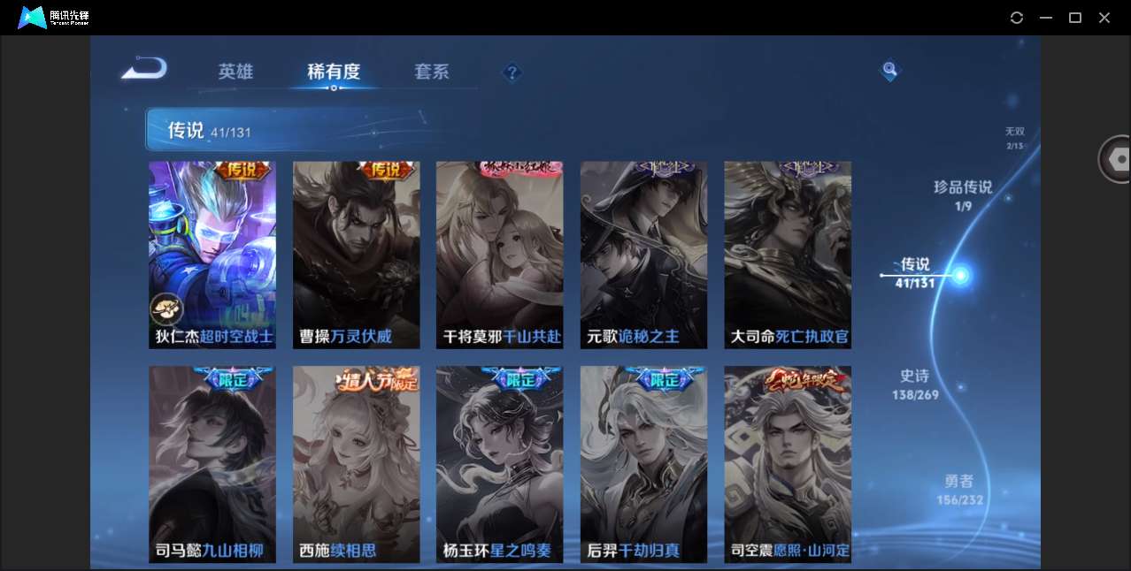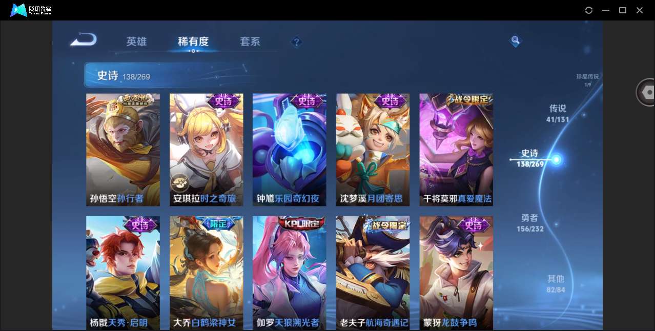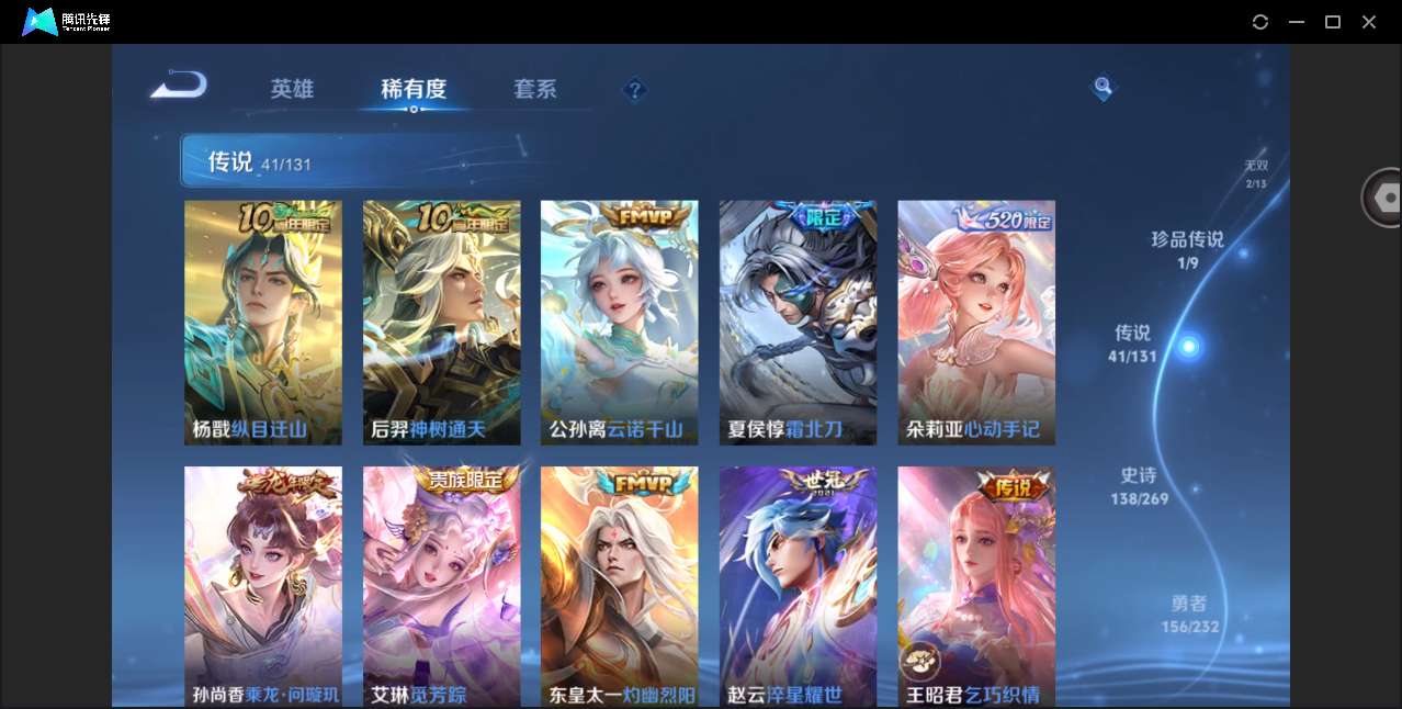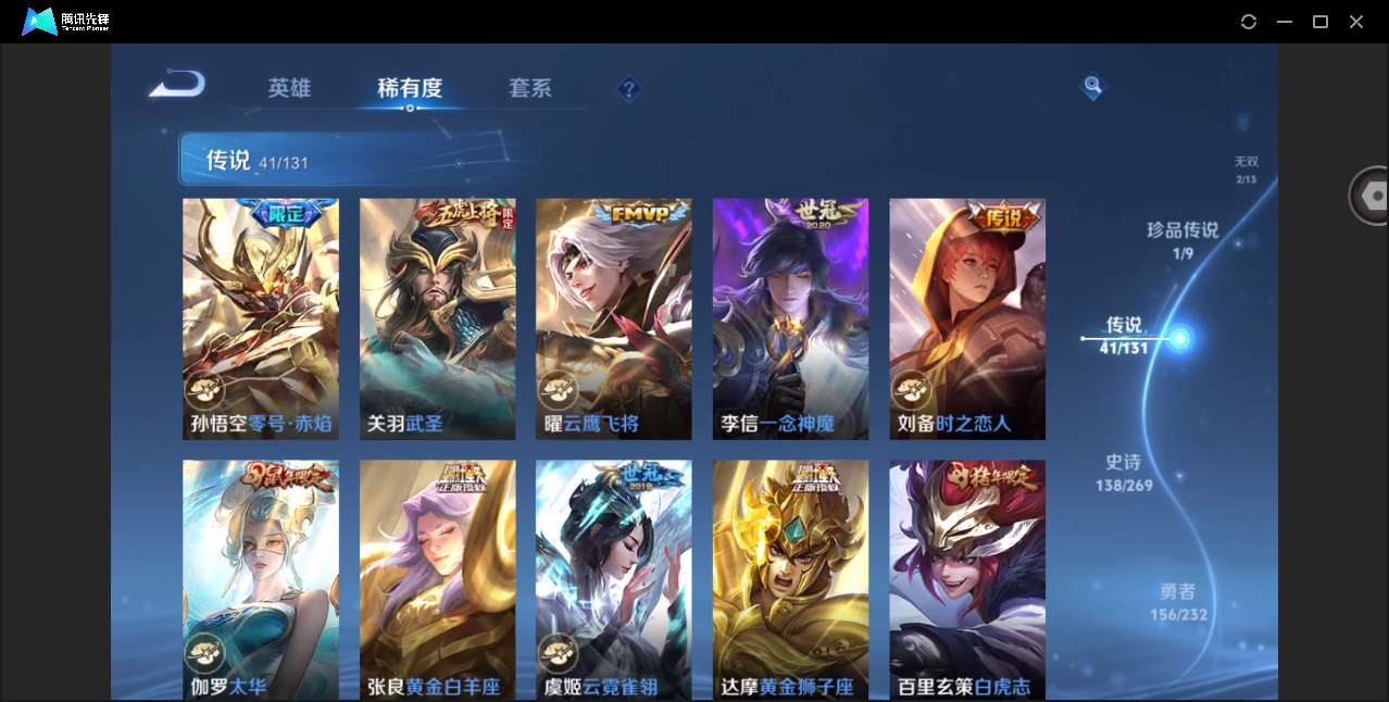 ky v10无双贵族 可认证 安卓(q)区 426皮 8典藏 2无双 1珍品传说 41传说 158限