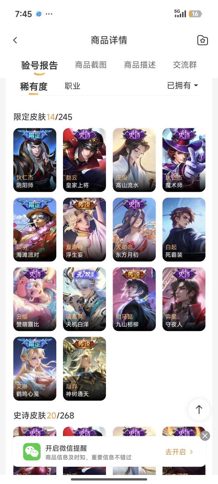 珍品传说皮肤:
