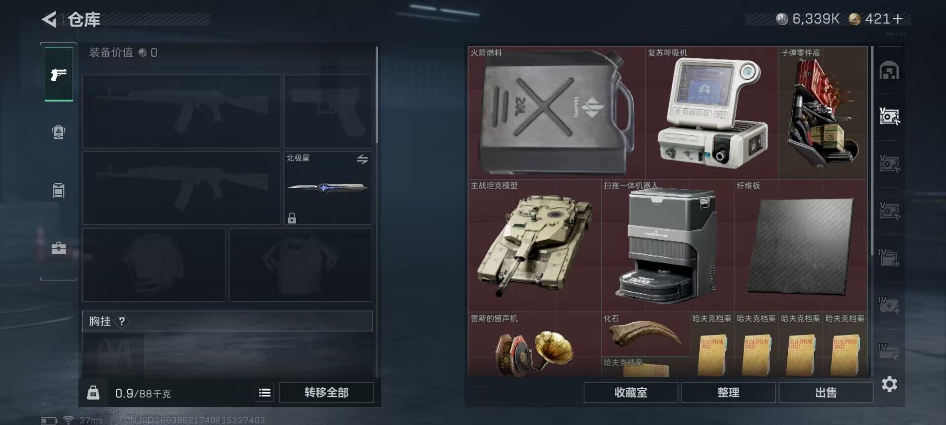 总资产(M):179M/哈夫币(K):6339K/哈夫币(K):6339K/传说枪皮数:25/全面战