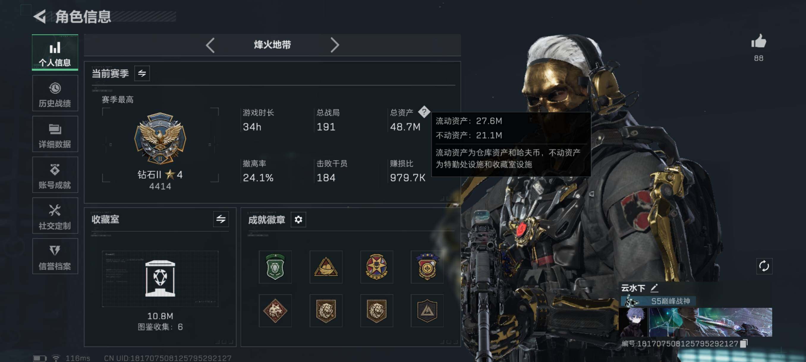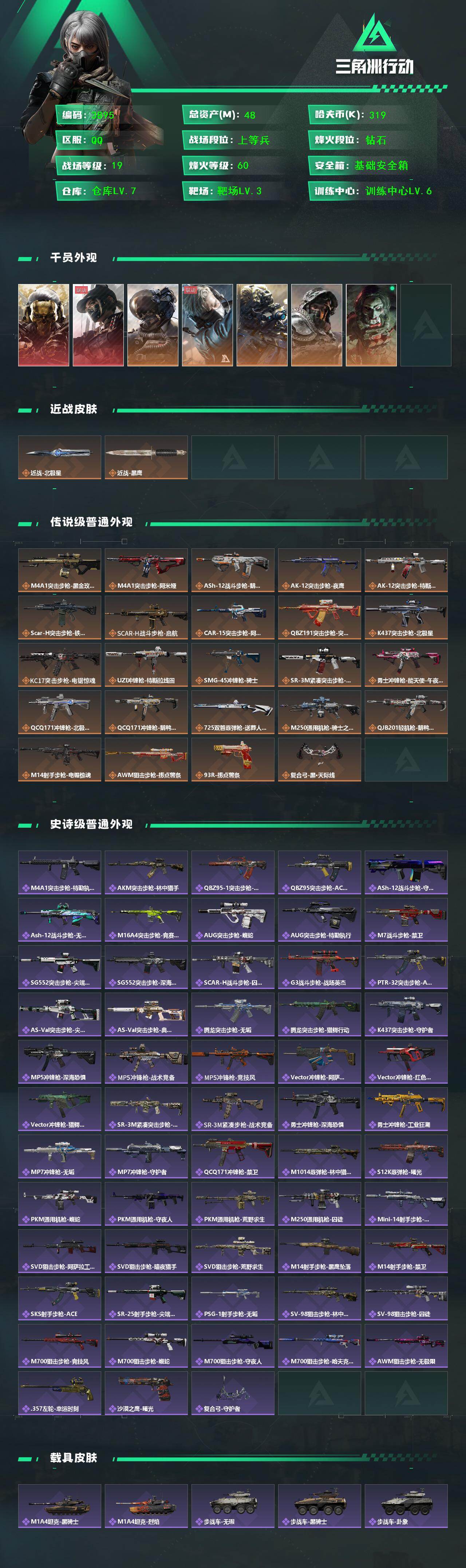 48m总资产-319k哈伏币-60烽火等级-钻石-19战场等级-上等兵
