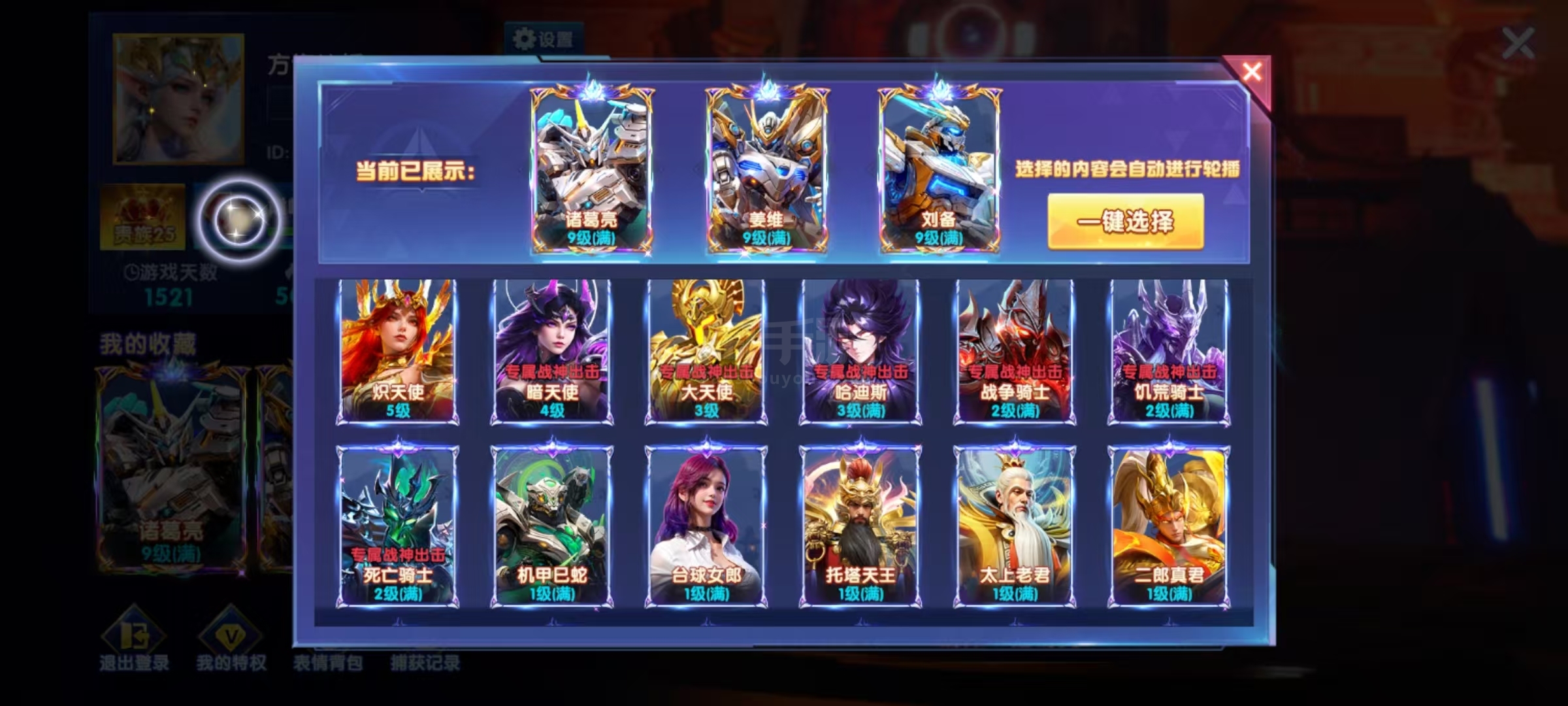 华为v25 满配十五套 天使555 满级曹操司马懿雅典娜双神卫 4个冥斗士出战 绝版星甲齐全 加成2216
