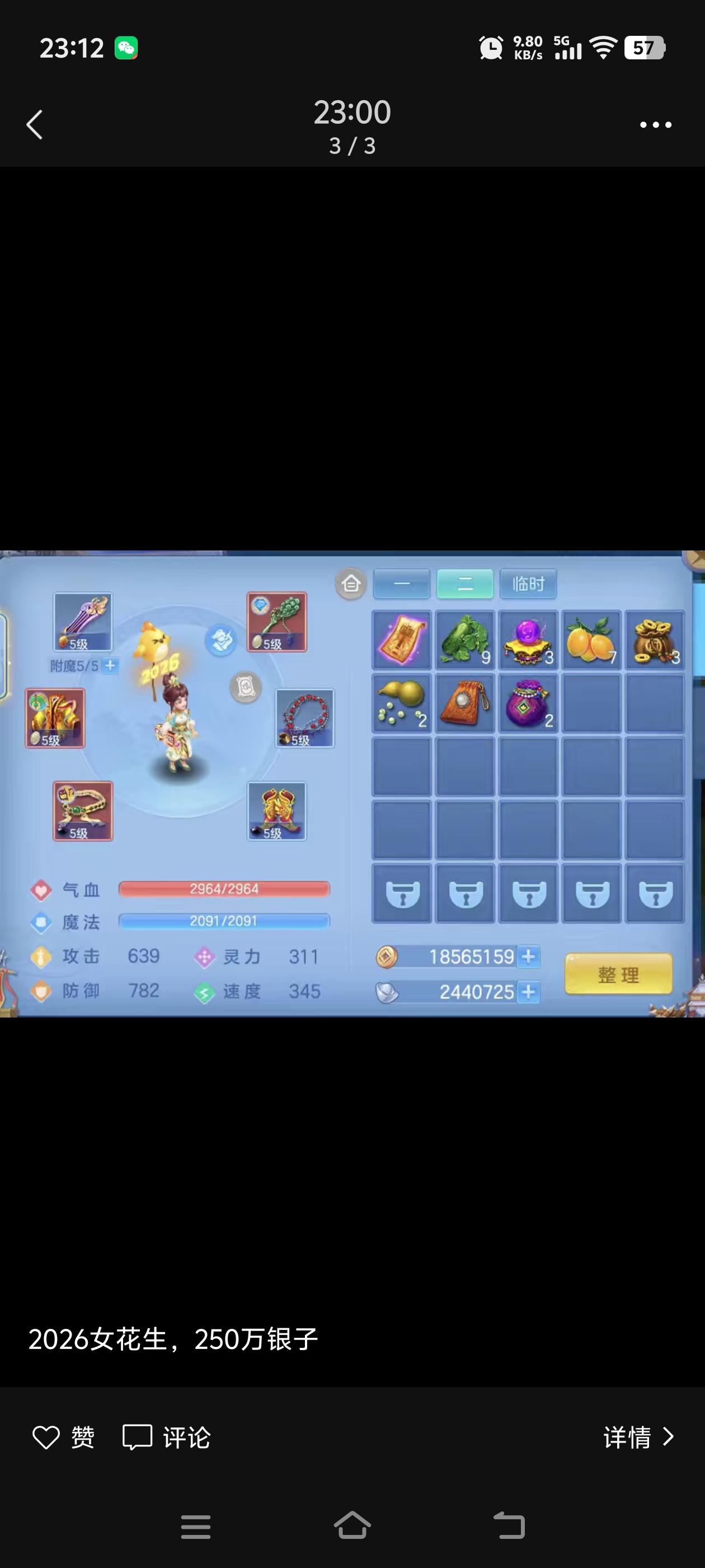 二0二六2026,女花生,250万银子,高级月卡,还有其他职业