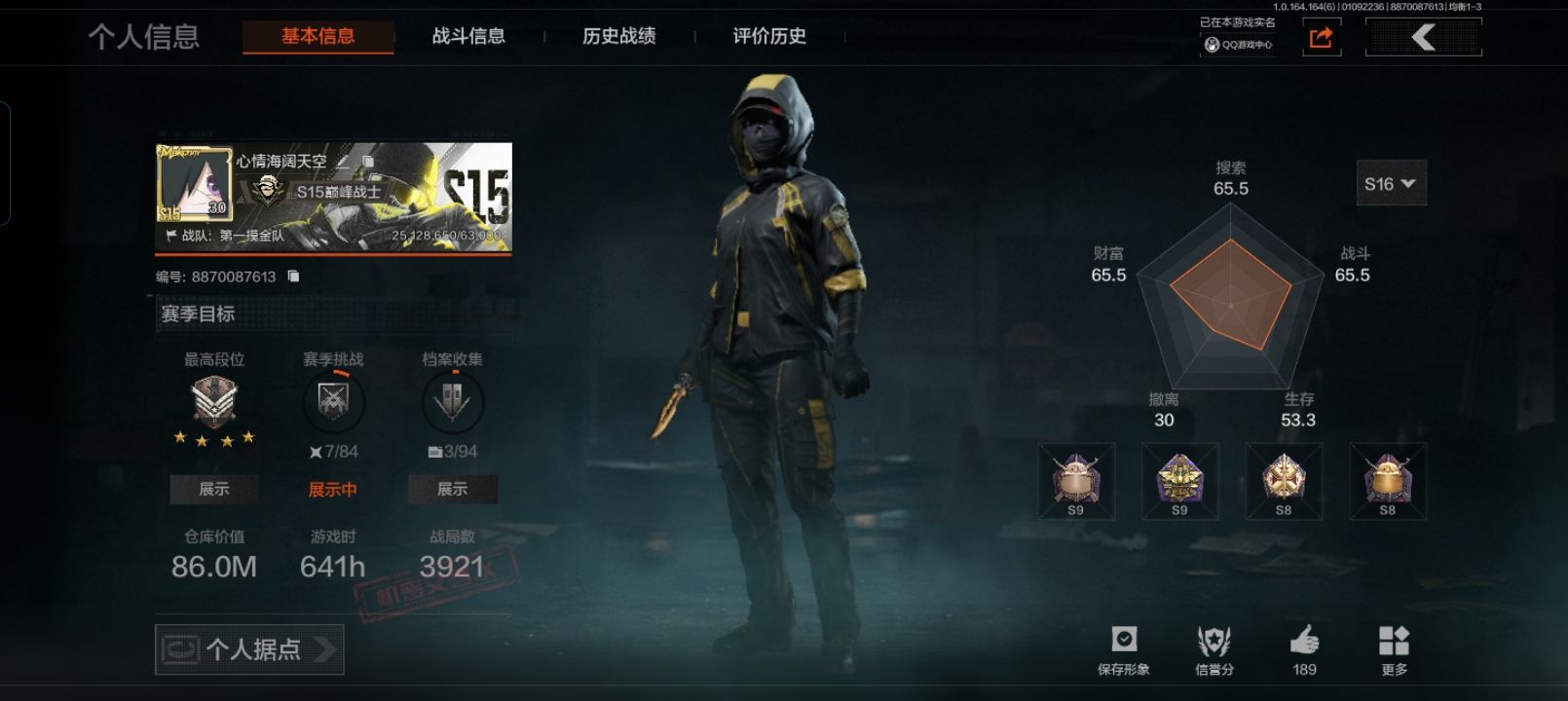 FY5952,总资产:86m,近战武器,S-07折刀,赢家匕首,角色装扮(紫),和平先锋作战套装,高地武士套装,王国卫队礼装,王国卫队礼装轻装,鎏金街头套装,都市夜影套装,金色枪皮,浮麟影青QBZ192,旧王圣谕VSS,棱光裂变QBU191,紫色枪皮,德尔塔小队H416,禁止访问UMP45,德尔塔小队M4A1,鱼跃丹青DT MDR,赢家F2000,骑士之剑G