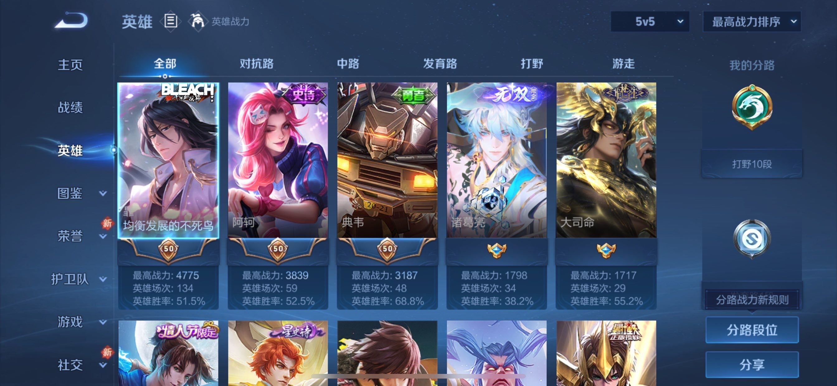 可换绑【诸葛亮无双 暃珍品 至尊宝 多传说限定号】5按键 五级铭文11 可二次
