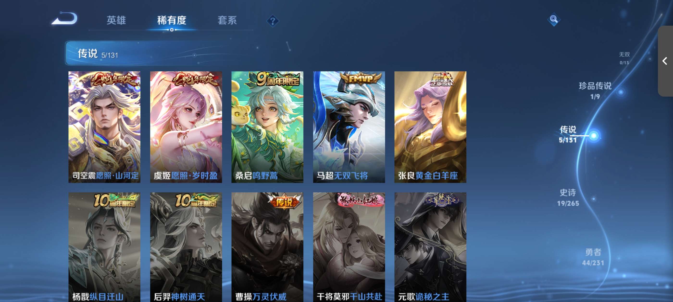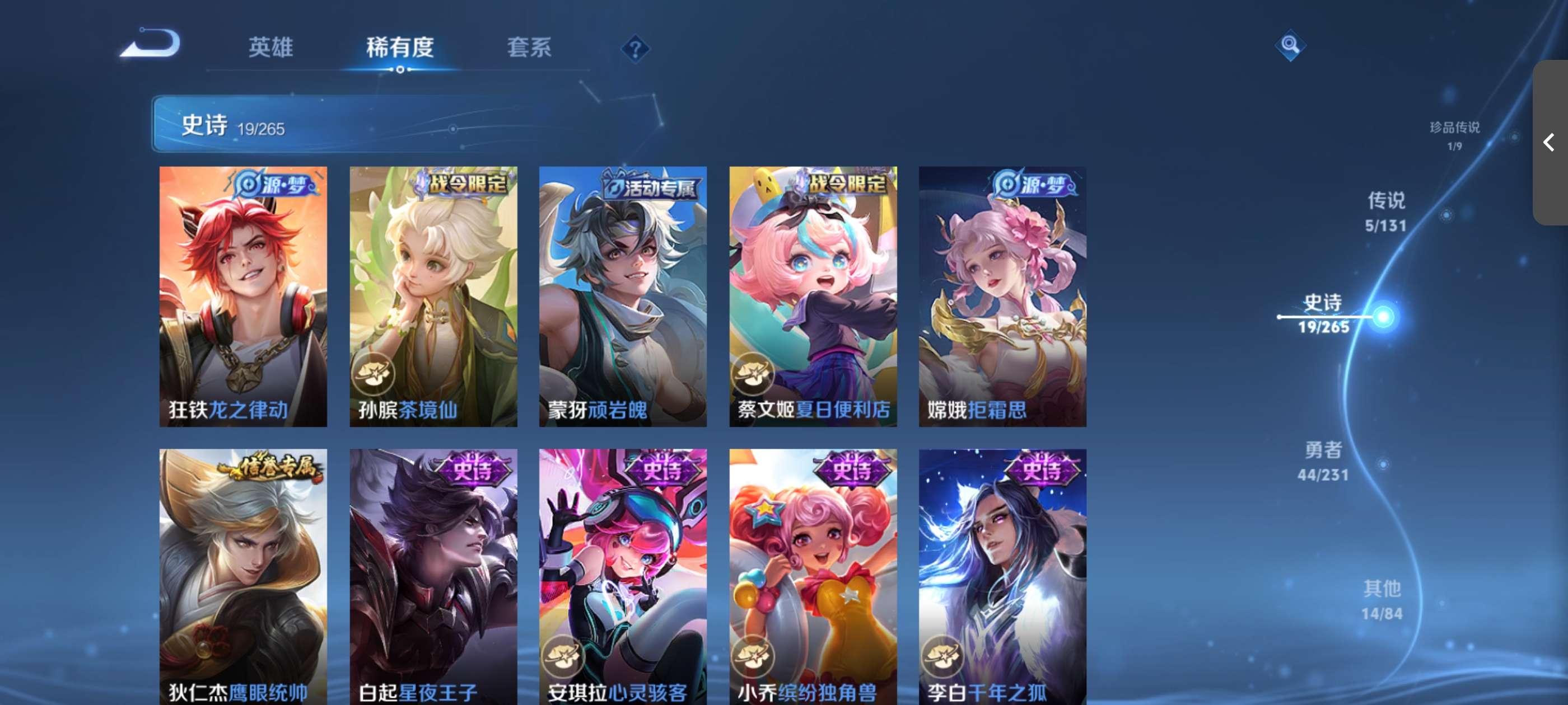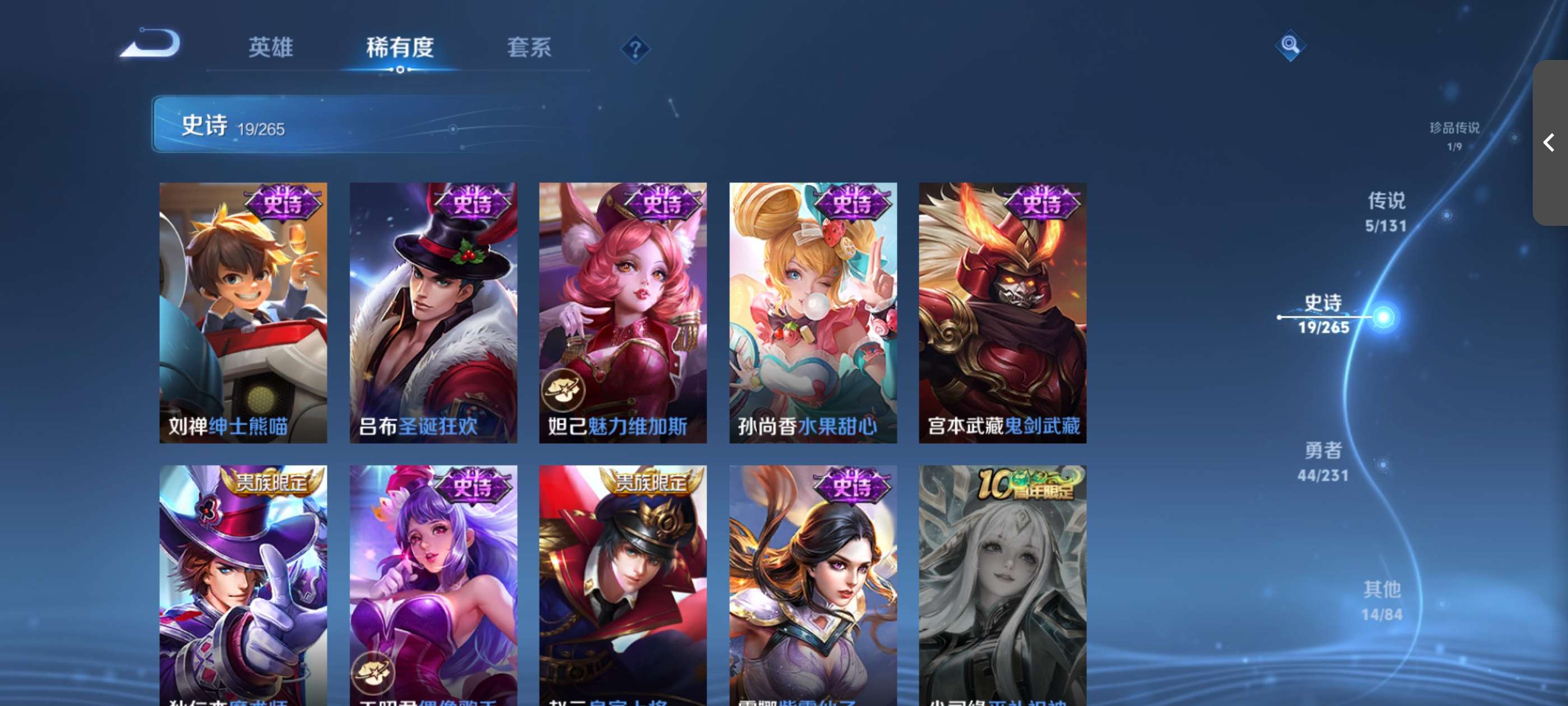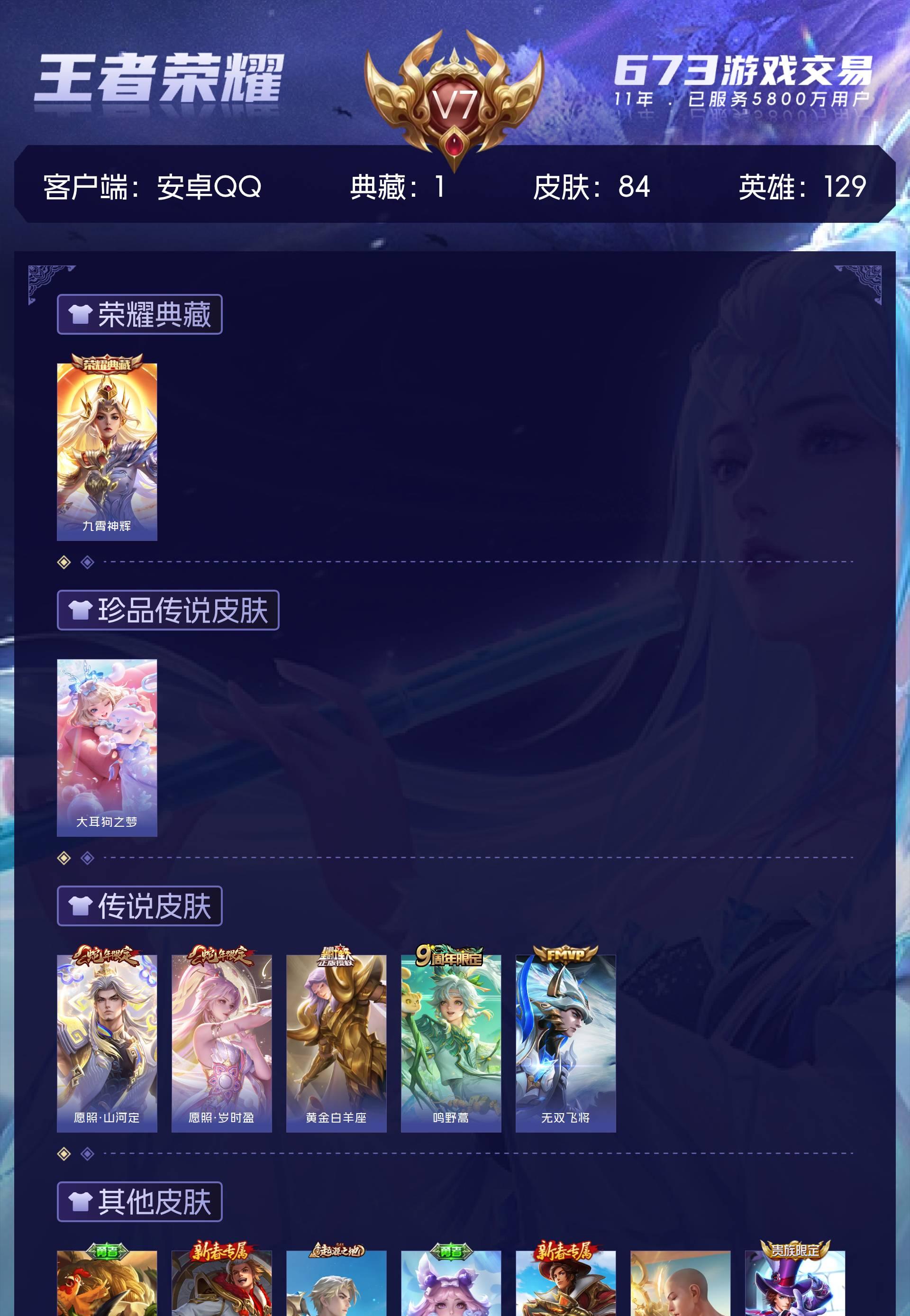 V7 皮肤84 英雄129 永恒钻石 荣耀典藏1 珍品传说1 传说5 其他皮肤83